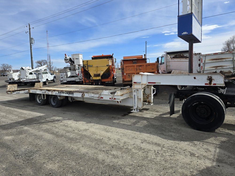 2008 Zieman fifth wheel tilt deck equipment trailer, 58,000GVW, 24 foot tilt deck, 4 foot stationary, 102 inches wide, good 17.5" tires, former municipal trailer