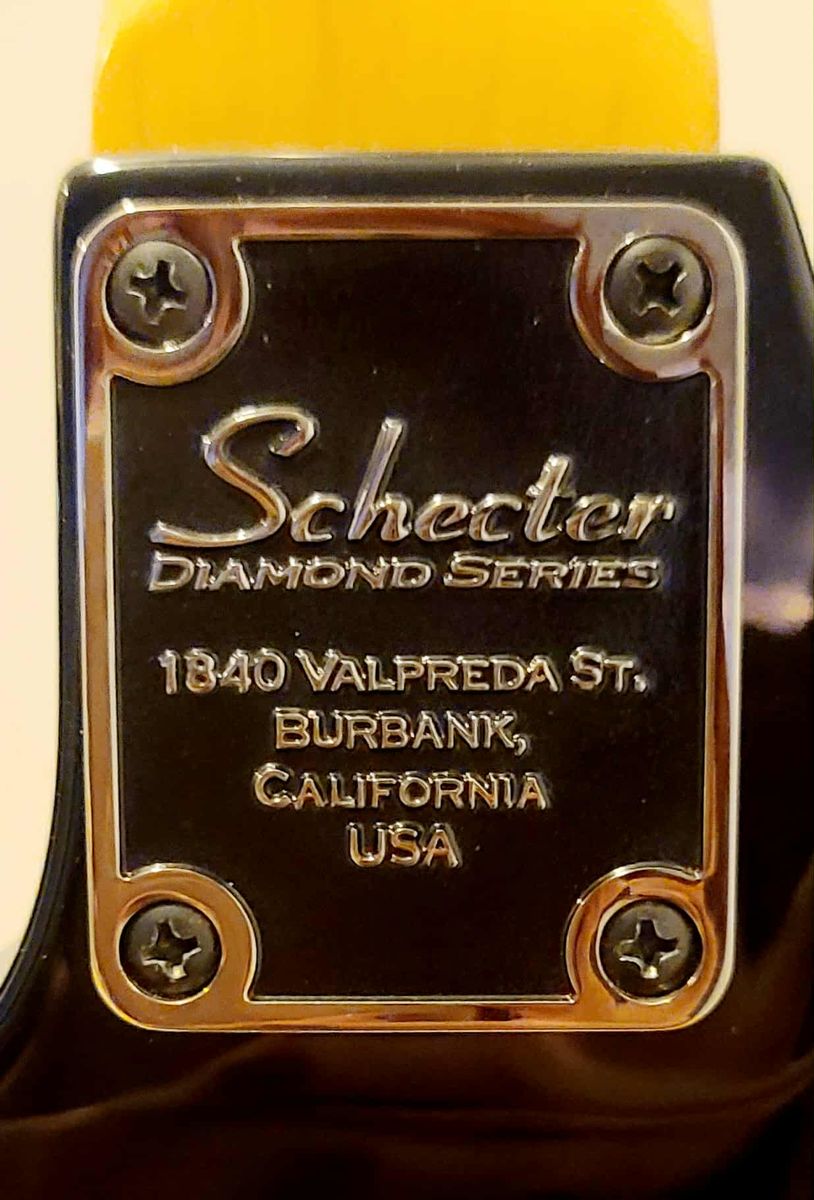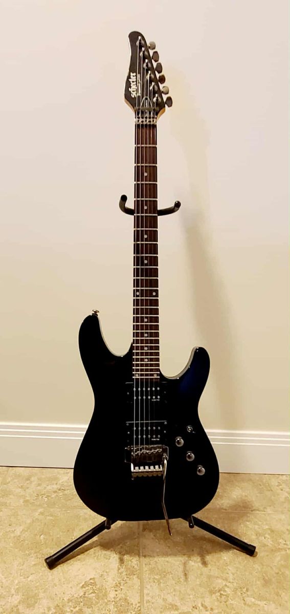 Schecter Sunset Deluxe FR - Floyd Rose floating bridge whammy bar - small ding in headstock shown in picture. (Light normal wear/scratches on painted body) 2 different straps are included (the all black one is leather/suede)