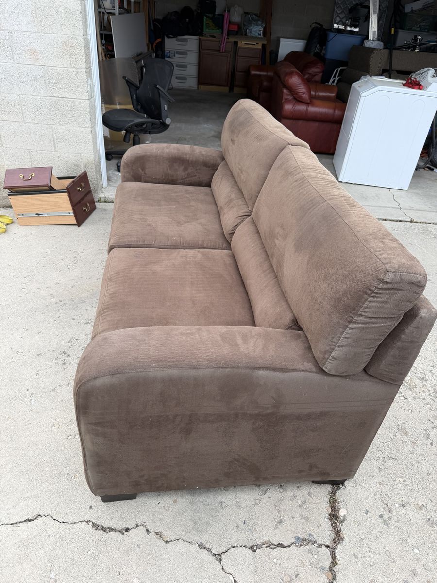 PayPalBrown fabric couch in good condition, great for a living room, office, or basement setup.
