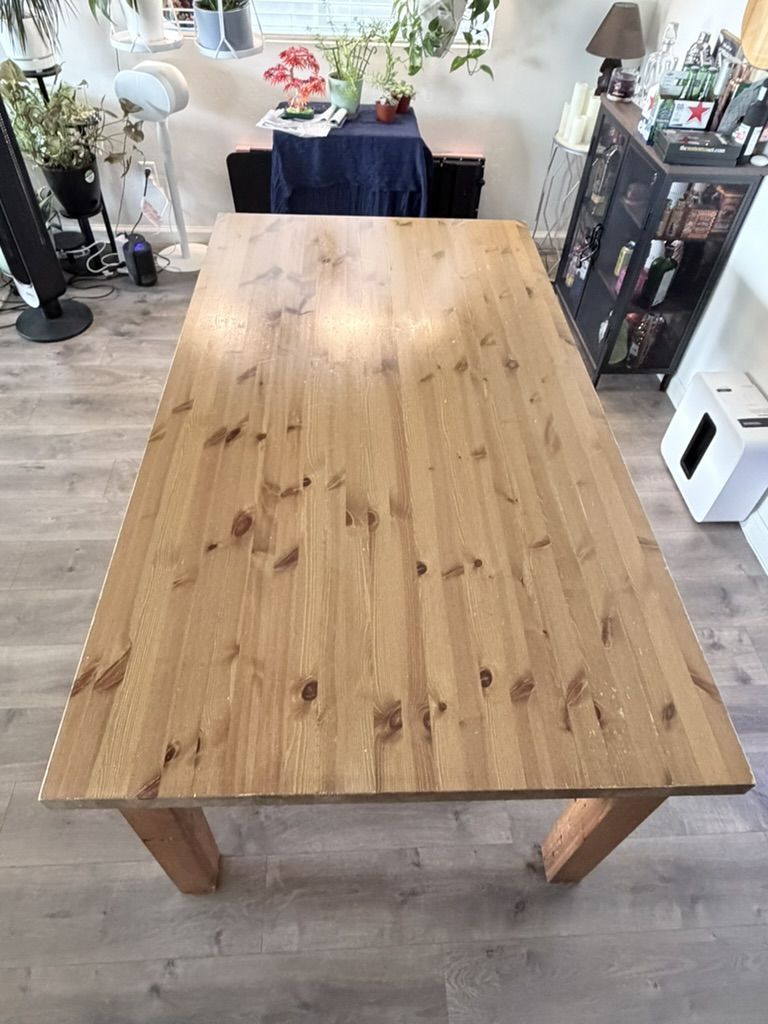 ApplePayBeautiful, high-quality solid wood dining table with a warm, natural finish and stunning wood grain throughout. This piece has a timeless, modern farmhouse feel that elevates any space.
