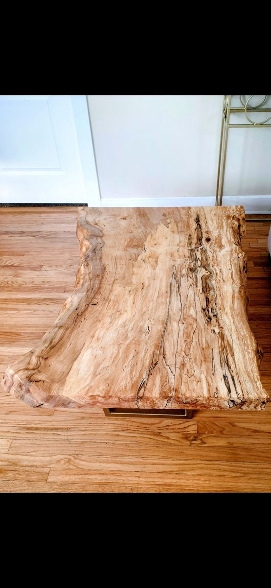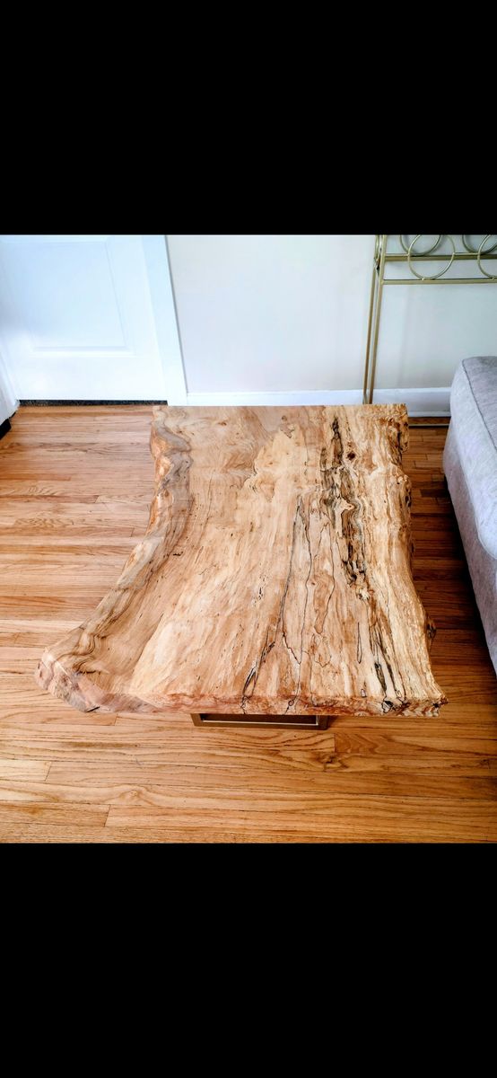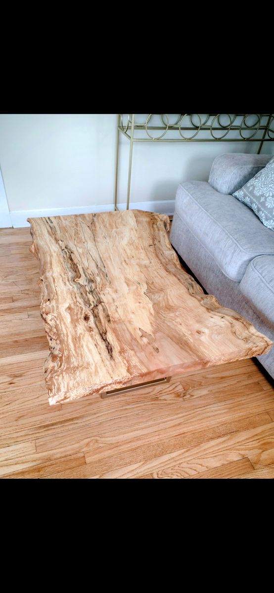 This Live Edge Spalted Maple Coffee Table is a striking centerpiece crafted from solid Spalted Maple wood, showcasing the natural beauty of its unique grain and live edge design. Its robust construction guarantees lasting durability, making it perfect for everyday use while adding a sophisticated, organic touch to your living space. Whether you're entertaining guests or relaxing at home, this coffee table blends rustic charm with modern elegance, creating a warm and inviting atmosphere. Elevate your living room with a piece that celebrates nature’s artistry and stands the test of time.