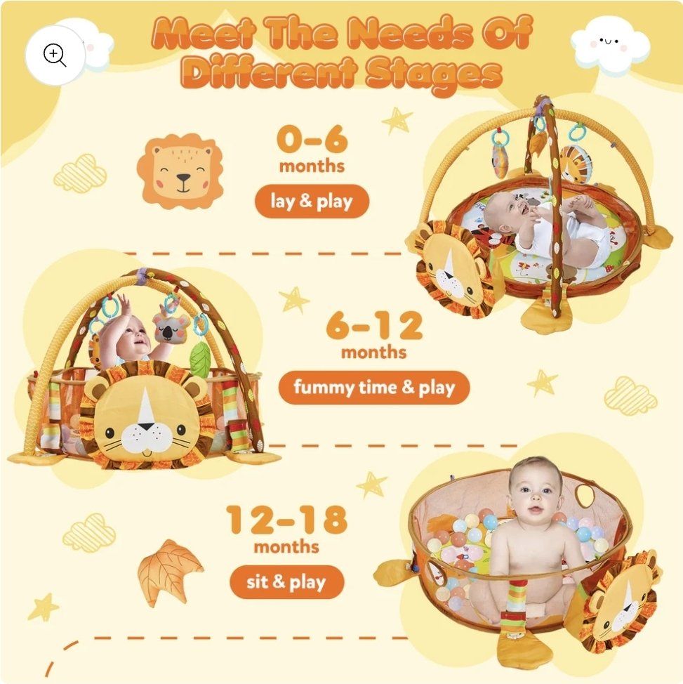 VenmoHappy Space 3-in-1 Baby Play Gym Play Activity Mat with Ocean Ball Sensory Toys For Newborn Infant Toddlers 0-36 Months, Yellow Lion New in Box!