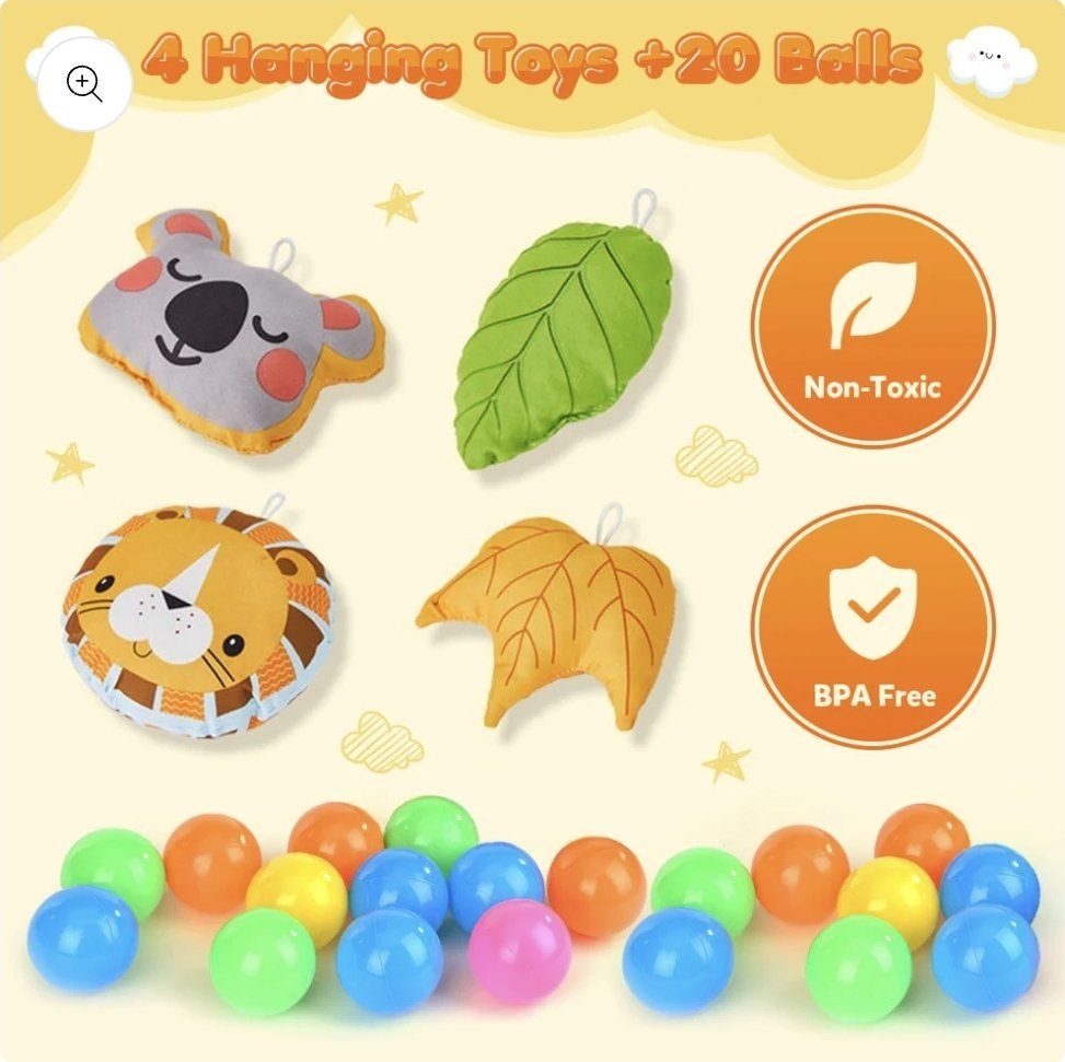 Convenient Storage The cute lion themed storage bag can store all the toy balls in the bag, which is convenient and worry-free.