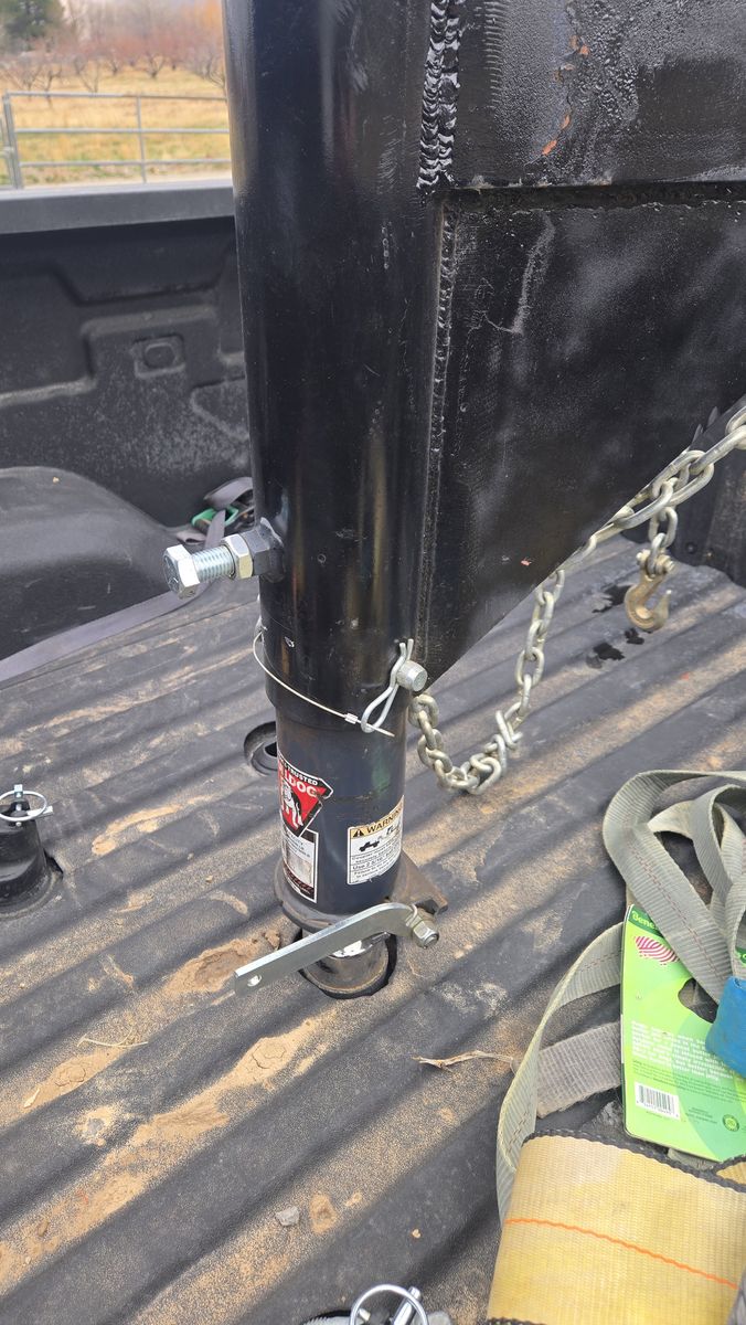 Manual turn crank jack, rear magnetic lights for proper towing.