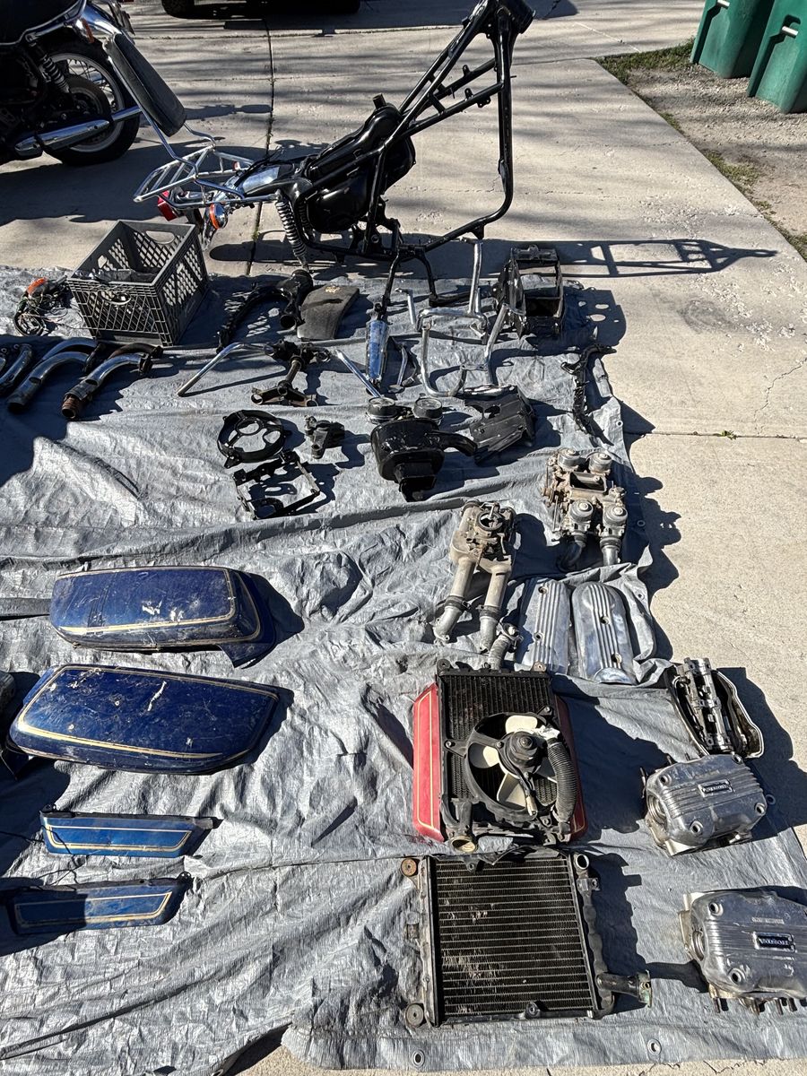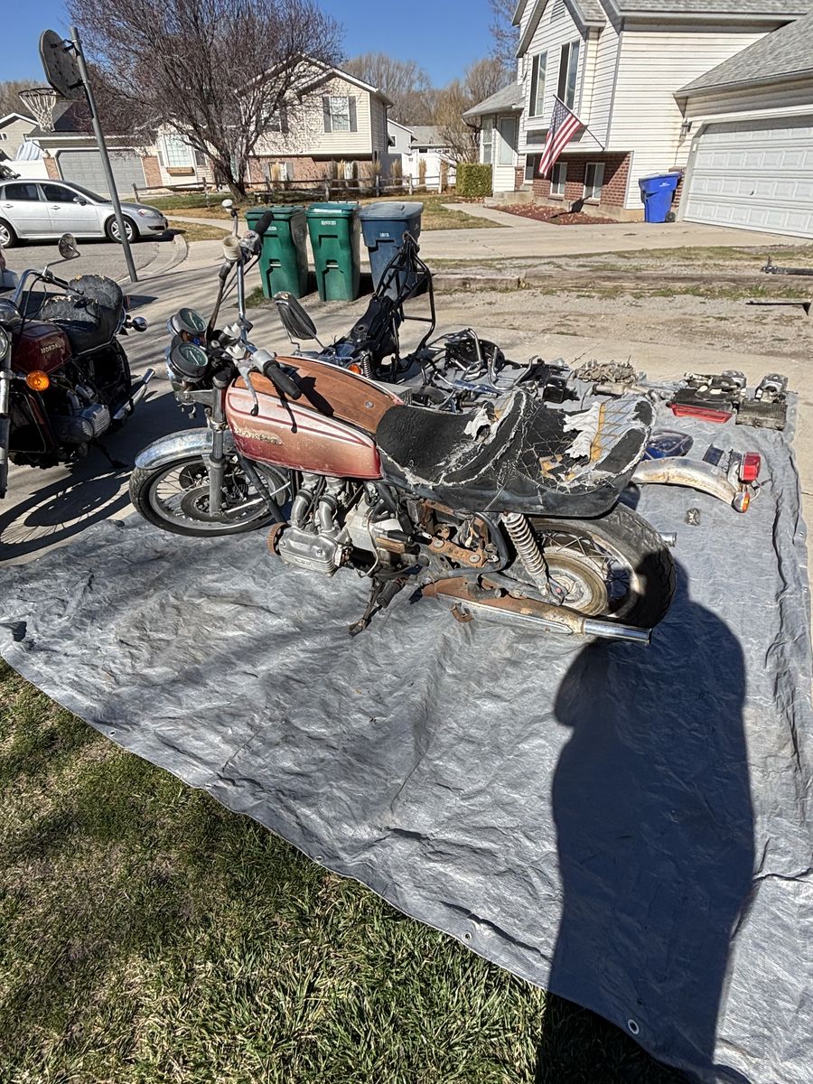 VenmoI have a pile of bikes and parts looking to quick sell they rang in year from 75-78 there is one complete bike that cranks over has title and key. Then there are two that have parts missing and a frame. Out of the 4 two are title and frame is bill of sale. The black bike is a Honda cb750 then on tarp there is parts and a gl1000 motor. Let’s make a deal no scammers no codes. Located in Lehi