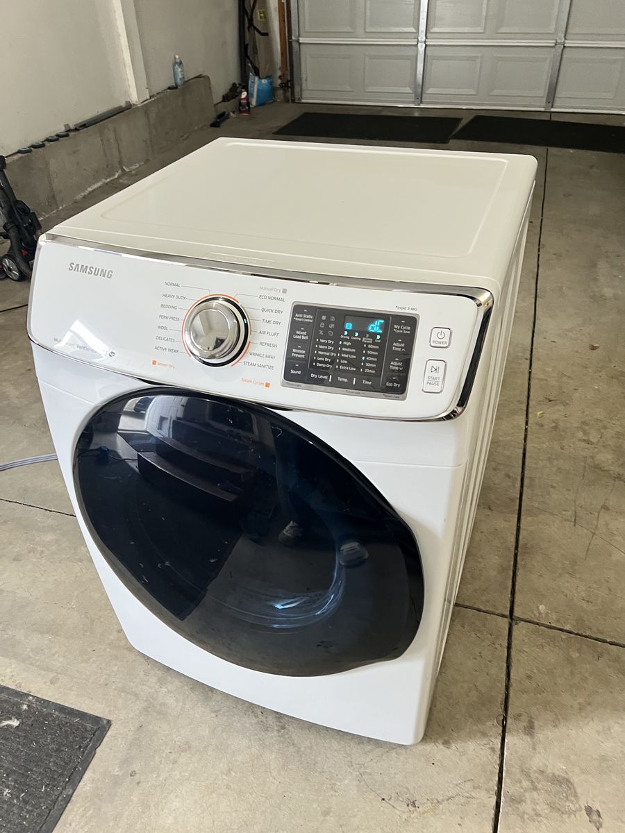The Samsung DV45K6500EV/A3 is a 7.5 cu. ft. electric, front-load dryer in Black Stainless Steel featuring MultiSteam technology, a vent sensor, and 14 drying cycles. It is ENERGY STAR-certified, includes Smart Care, and offers specialized cycles like Steam Sanitize and Eco Dry
