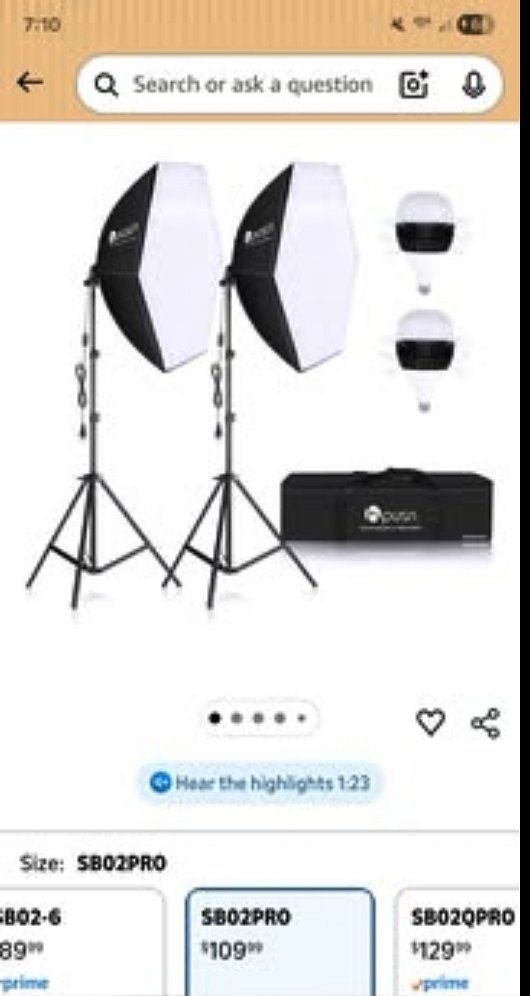 Boost your content creation, photography, or video setup with this high-quality HPUSN Professional Softbox Lighting Kit. Perfect for studio work, portraits, or product photography. Included in the set: 2x Softboxes: Large hexagonal softboxes with high-quality nylon reflectors and white diffusers for soft, even light. 2x Adjustable Light Stands: Heavy-duty aluminum alloy stands that are easy to adjust and very stable. 2x High-Efficiency Light Bulbs: Energy-saving photography bulbs designed for natural color rendering. 1x Durable Carrying Bag: Custom-fitted nylon bag for easy transport and storage. Condition: Excellent/Like New. Everything is clean and fully functional. Easy to assemble and take down.