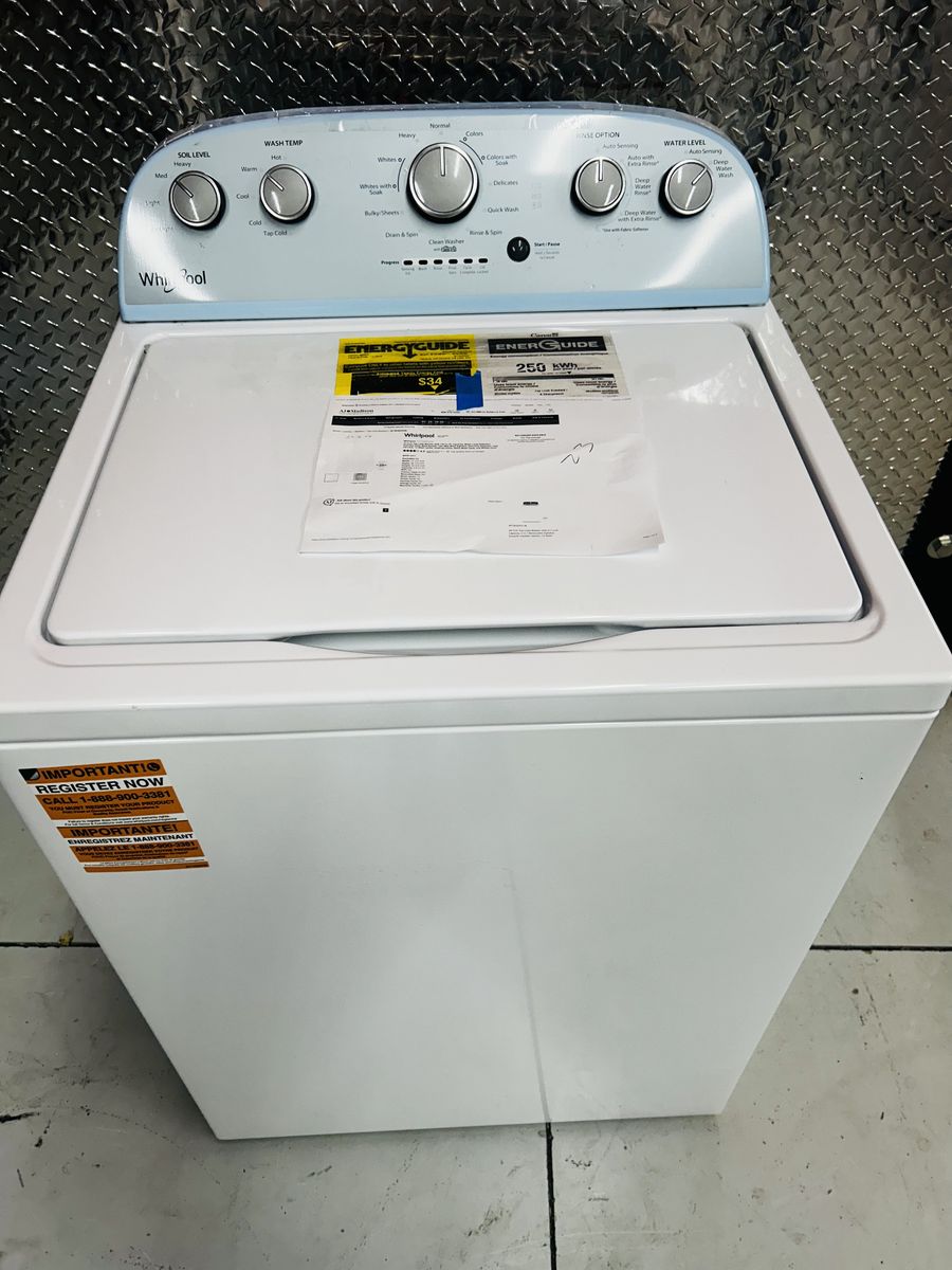 Whirlpool washer 3.8 cu ft stainless steel drum heavy duty normal colors colors with soak delicate whites with soak quick wash bulky sheets drain/spin clean washer with affresh rinse/spin extra rinse deep water wash etc..Brand New/Open Box. 45 day warranty, delivery/install available.