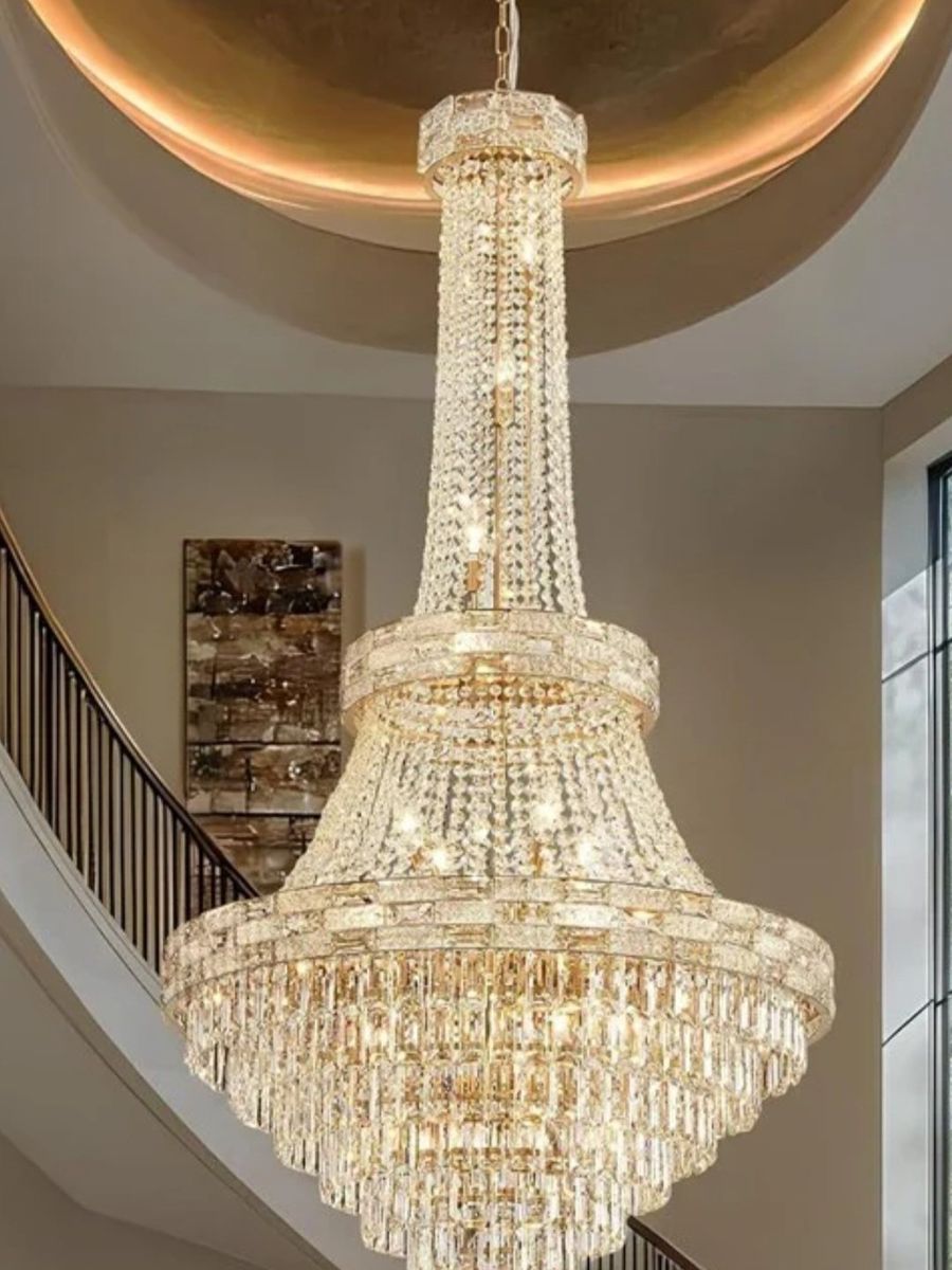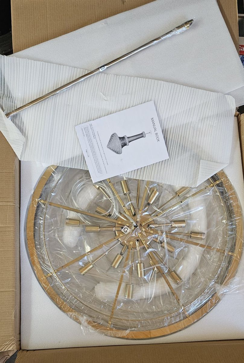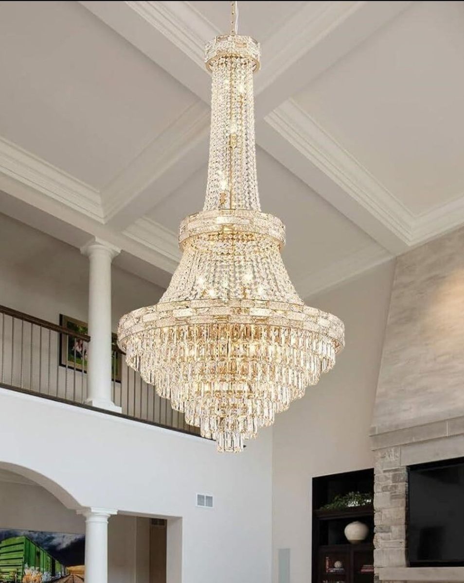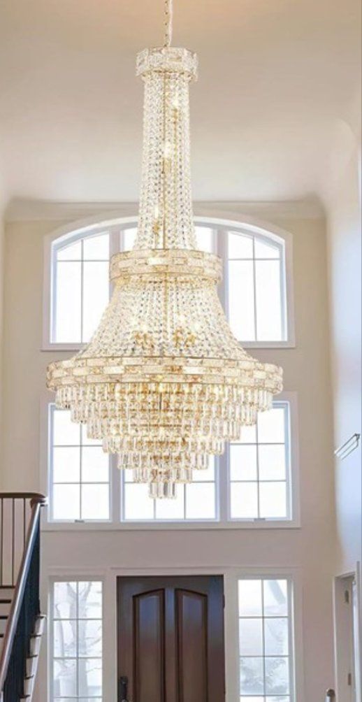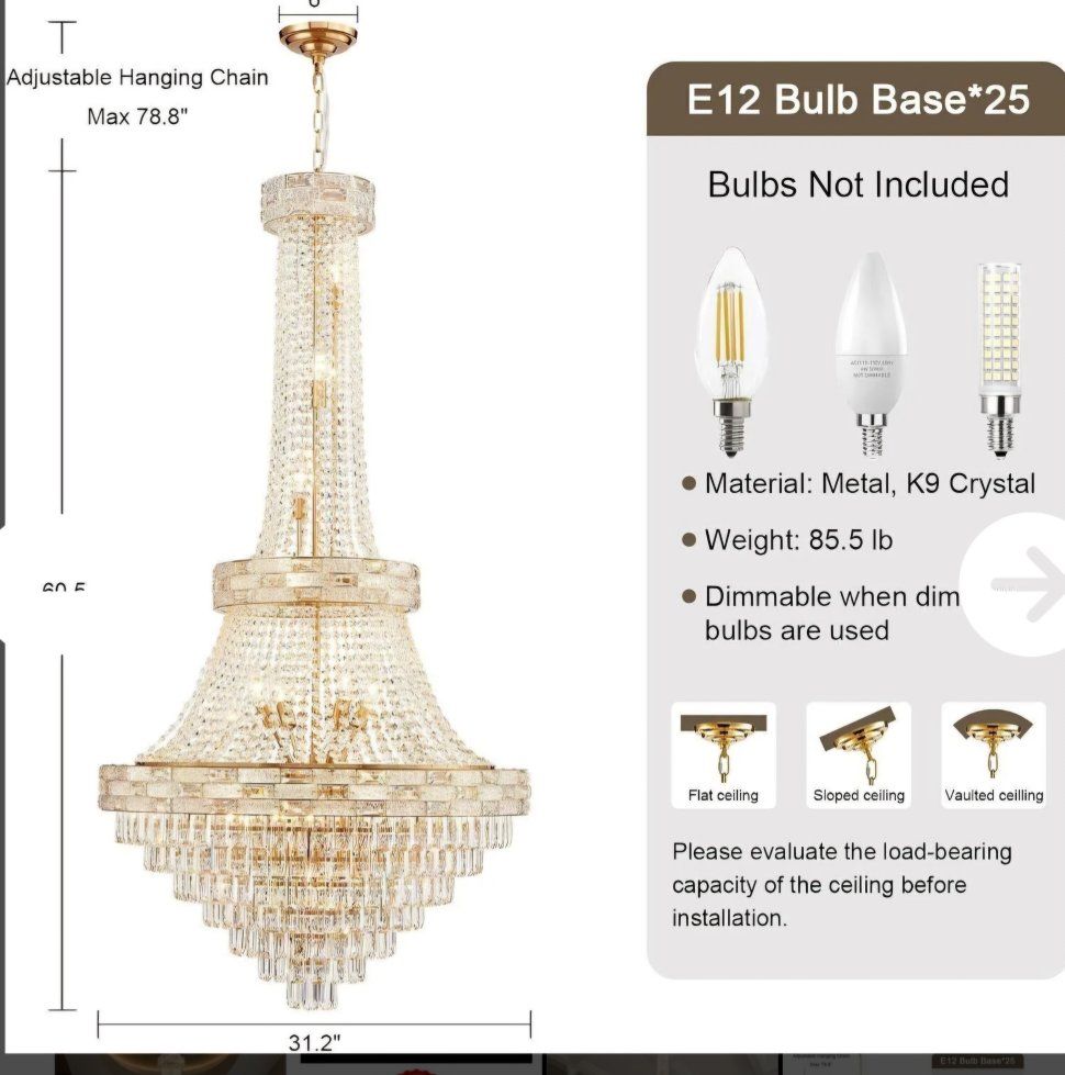 VenmoImpressive three tier crystal chandelier. 60" tall x 31" in dia. New in box. Uses 25 E12 bulbs (not included). Dimmable. 80lbs. This chandelier has over 1000 crystals. 40% off best price you can find on Amazon. Asking $600.00. Text is best. 801-870-0737. Thanks