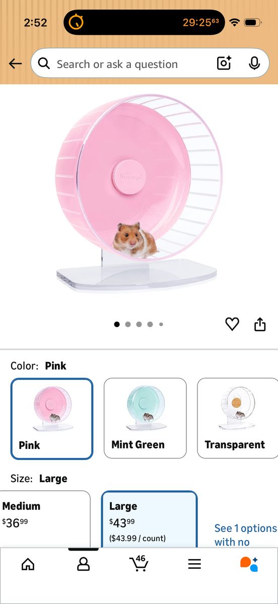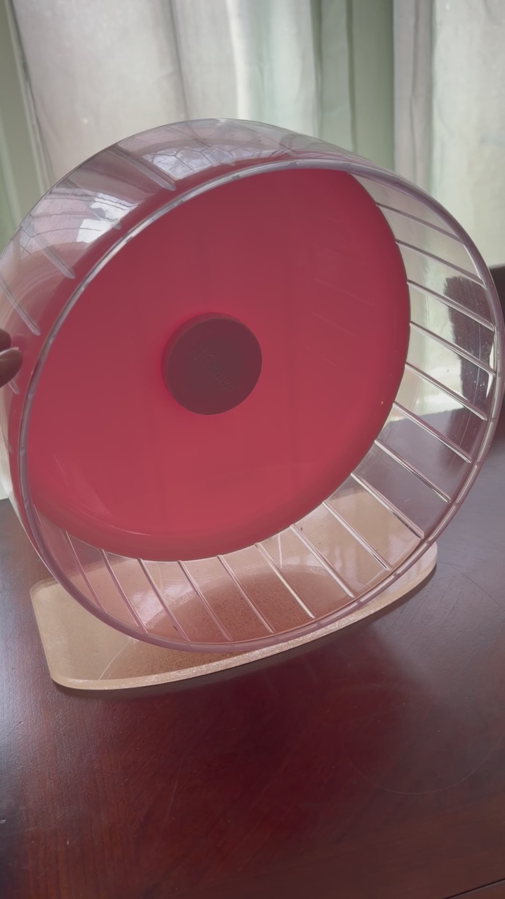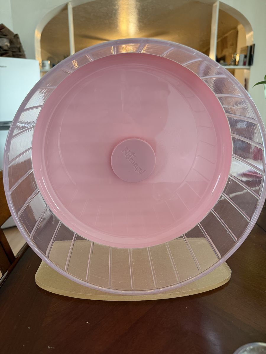 ZellePractically brand new large Niteangel silent hamster wheel in pink. This is the super quiet version, so you won’t hear constant spinning all night, perfect if your hamster is in a bedroom or shared space.