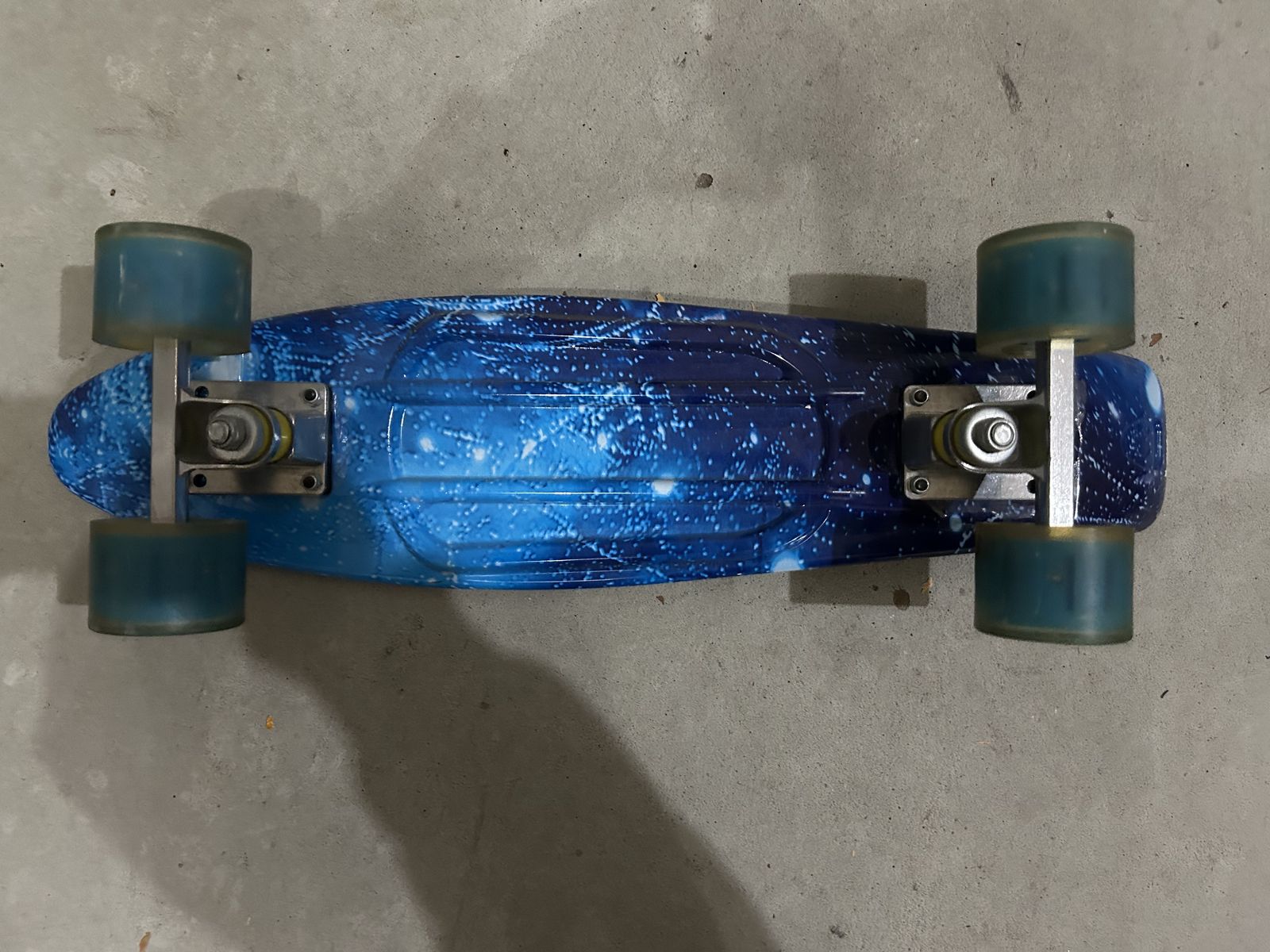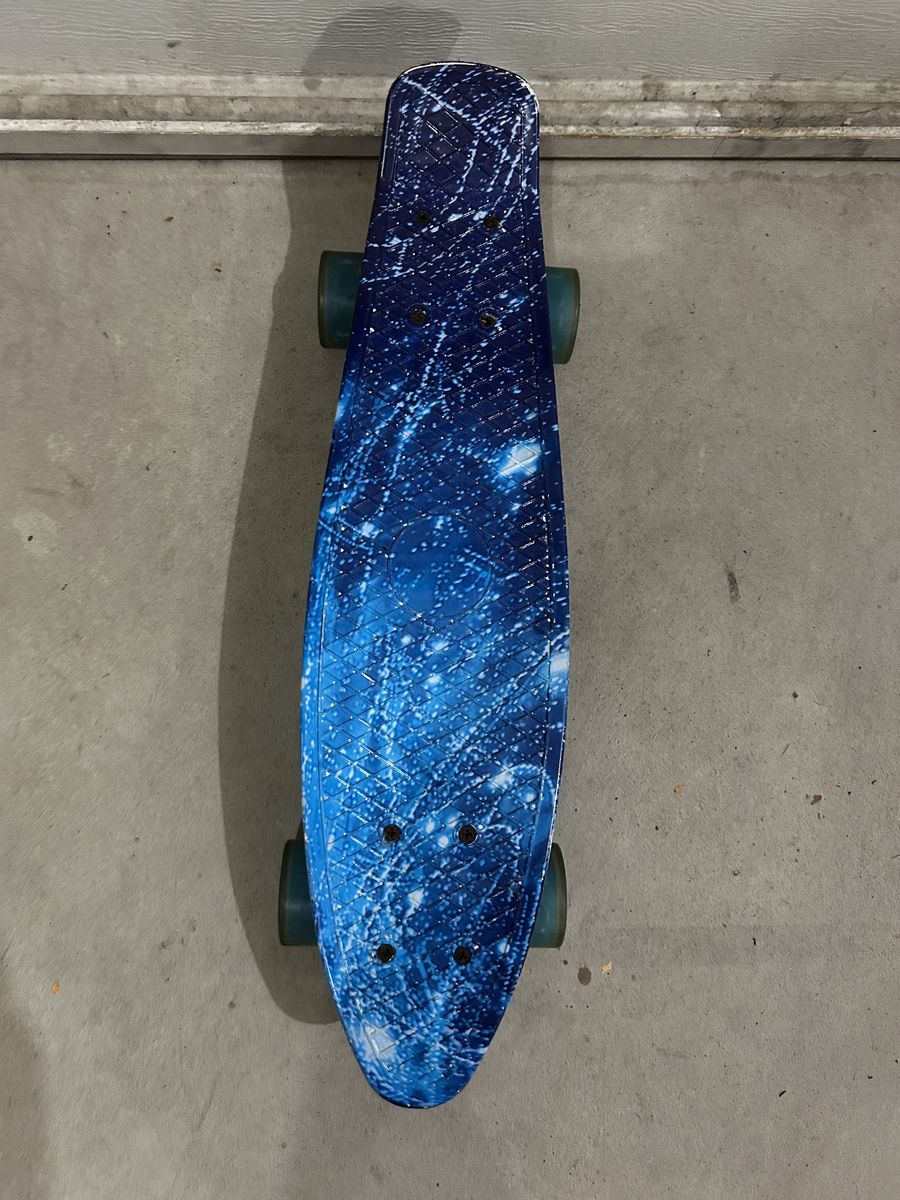 Selling this penny board its in good condition. Just has one scuff mark on the tail of the board. Wheels are in good condition.