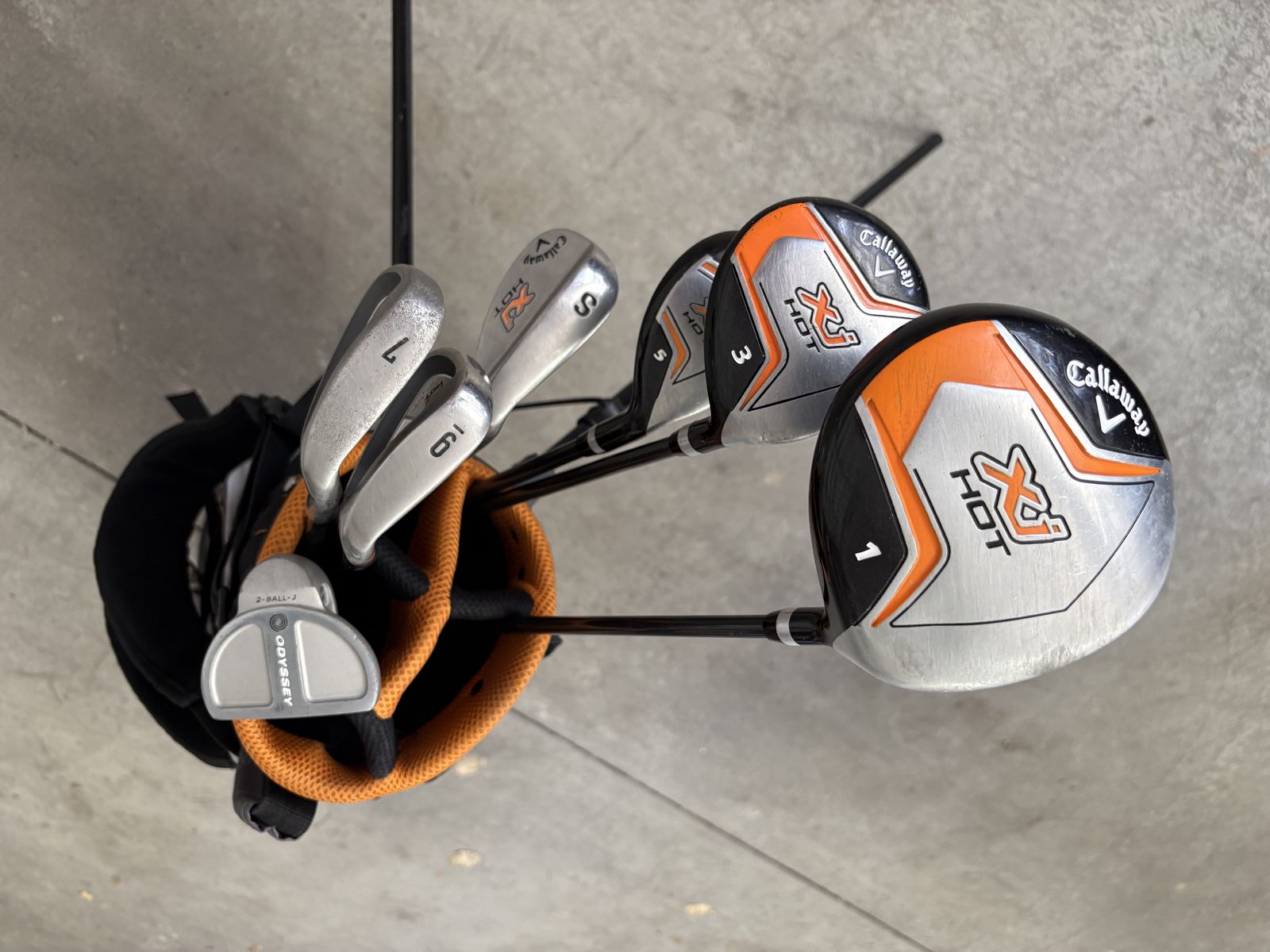 Set 2 - youth set - $75 Callaway Driver - 40 inches 3 wood, 5 hybrid, 7 iron, 9 iron, sand wedge, 2 ball putter & bag