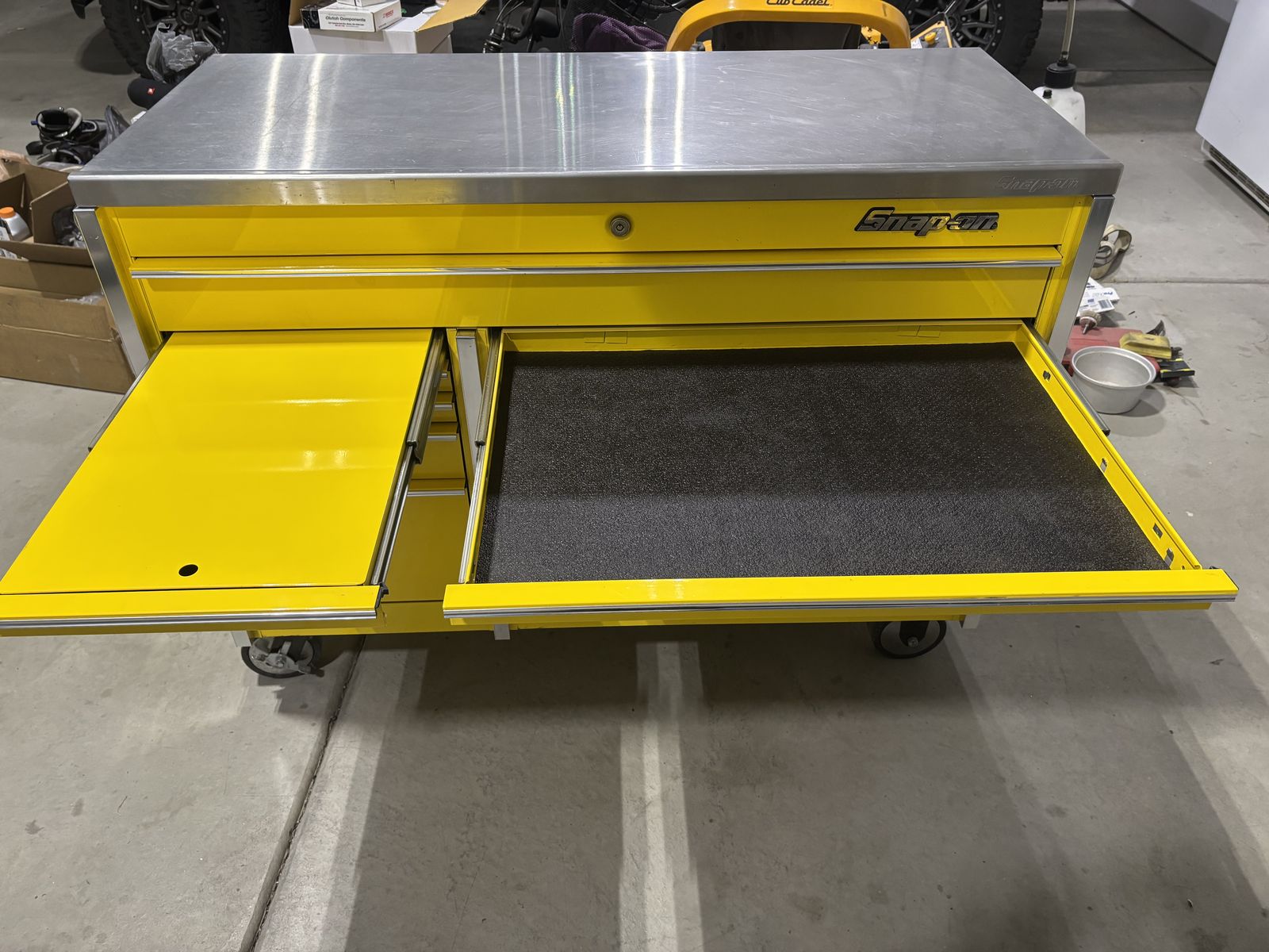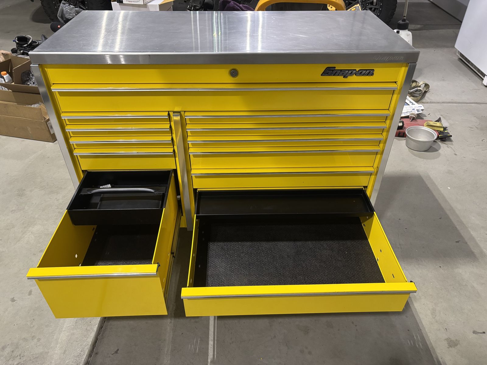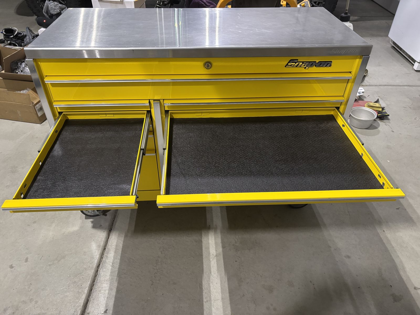 Selling a Snap on Master Series 54 inch roll cab in great condition. This is the KRL761BPES model super durability. Has a heavy duty stainless steel work top and 12 drawers with plenty of storage for all your tools. No trades $4000obo