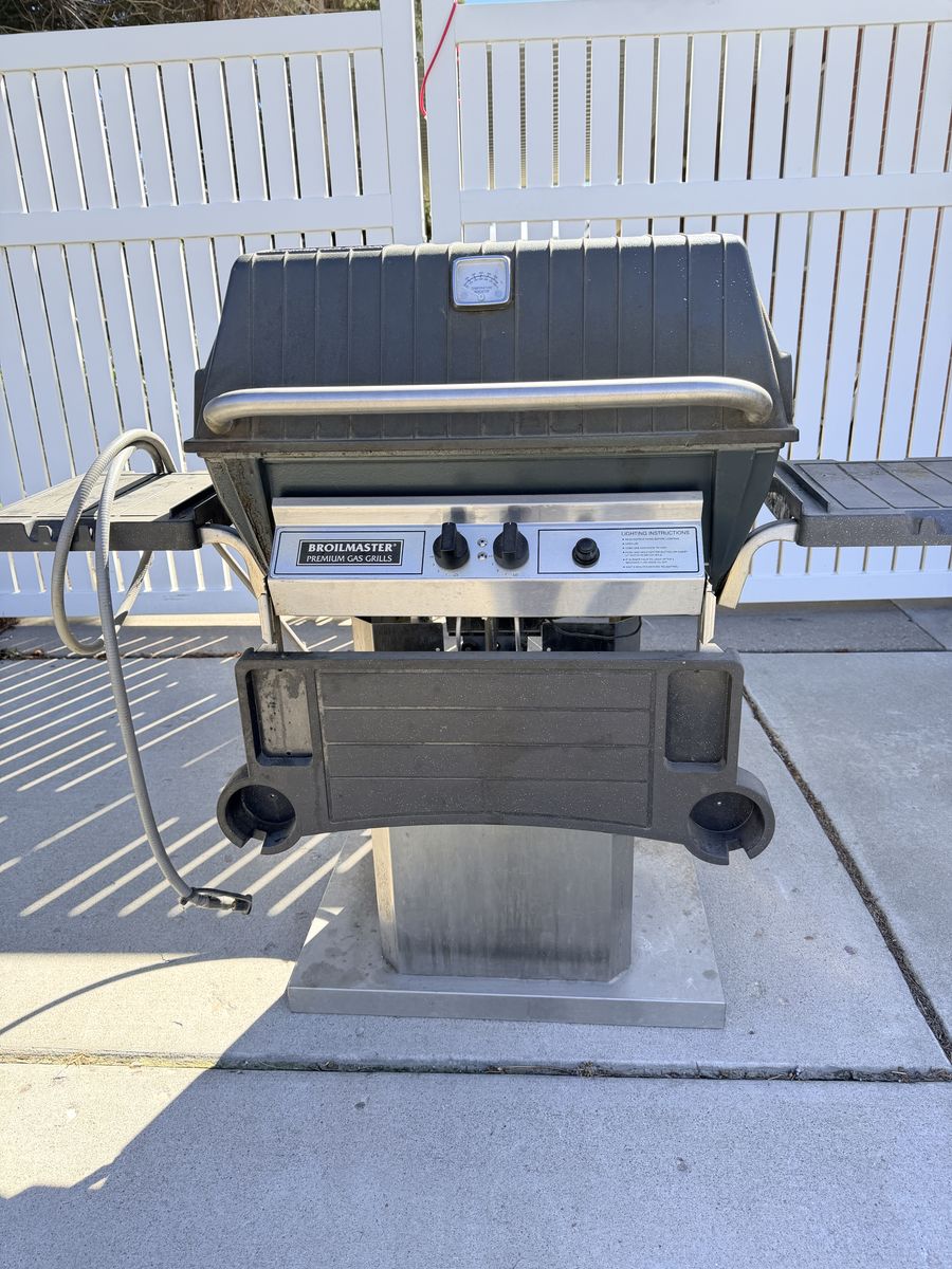 Natural Gas barbecue, about 10 years old, great condition. We downsized to a smaller unit. Yes, the natural gas hose line comes with it.