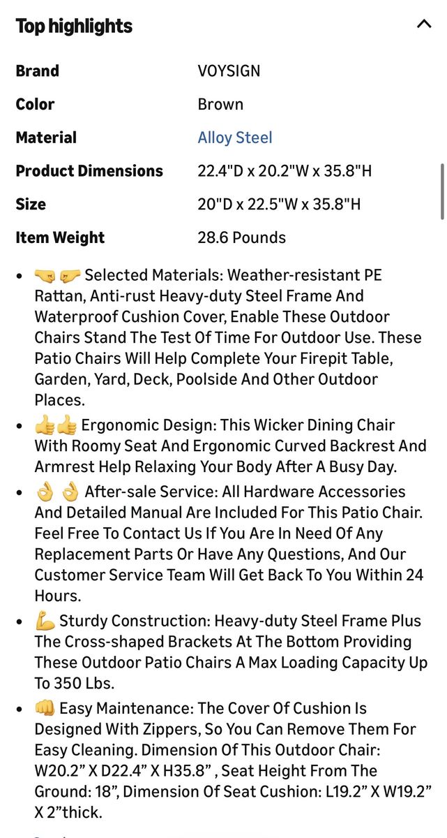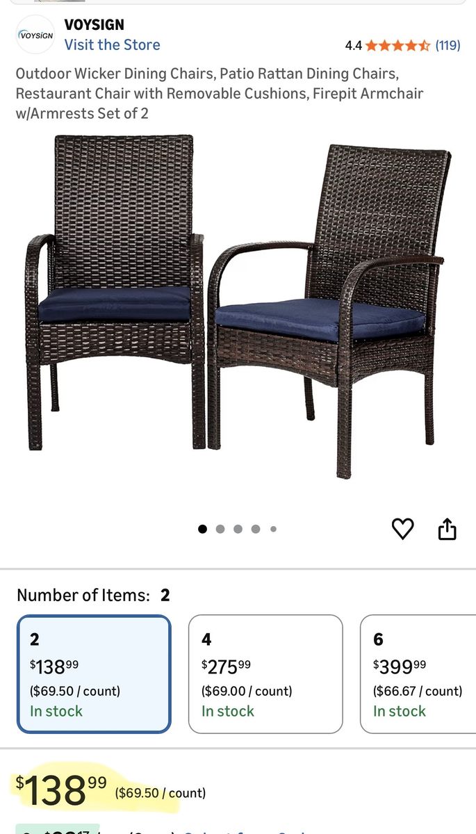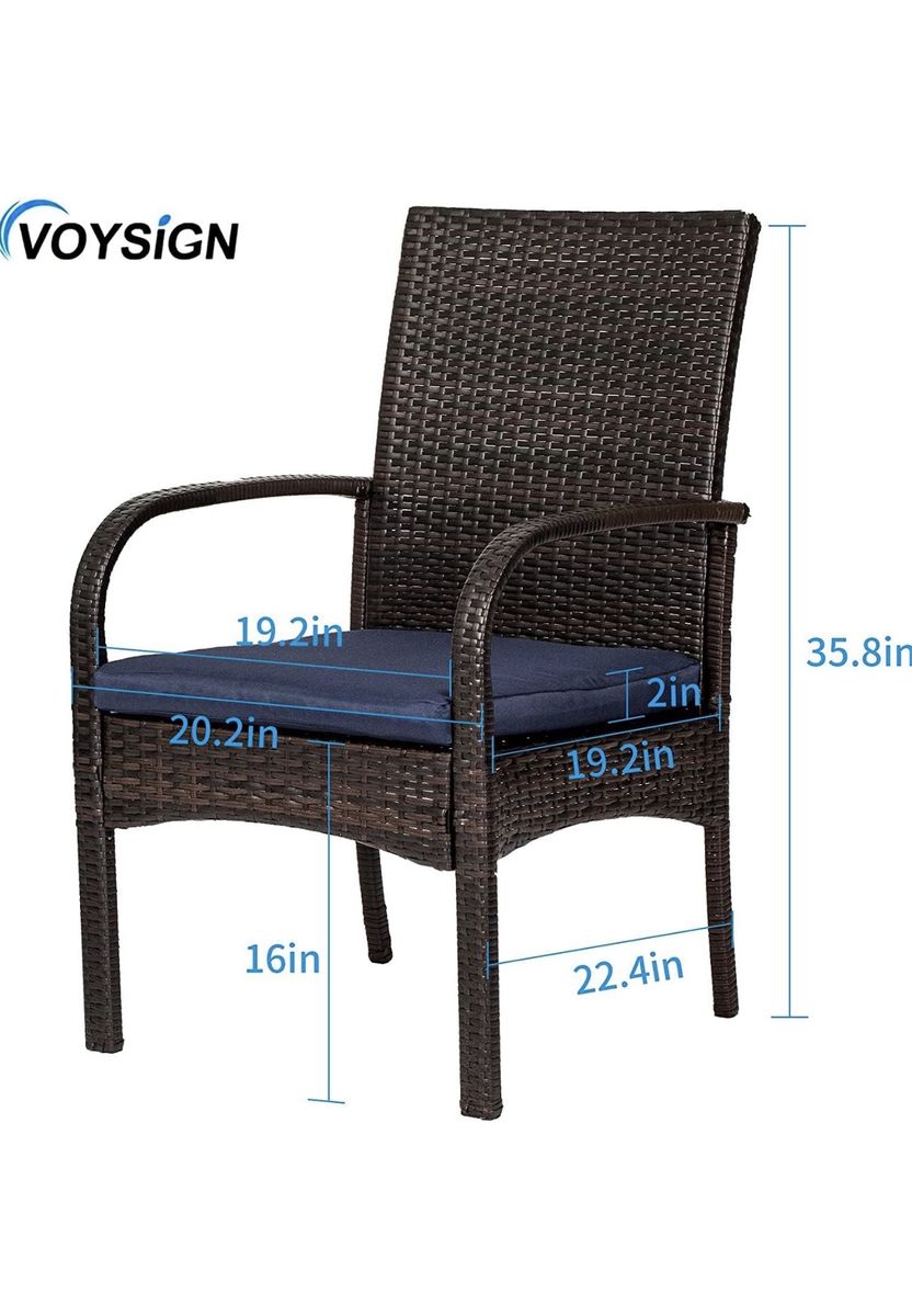 Venmo(2) New wicker chairs. Still in box will need to be assembled. Please see pictures for dimensions and additional information.