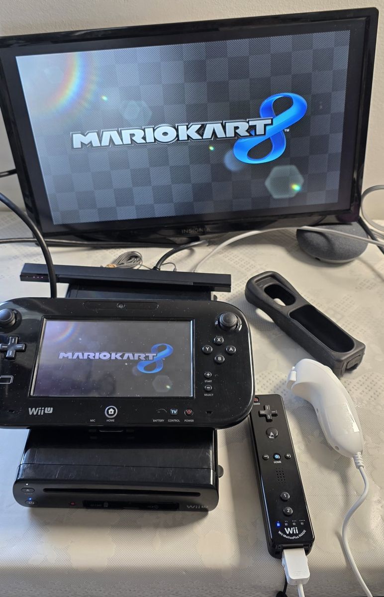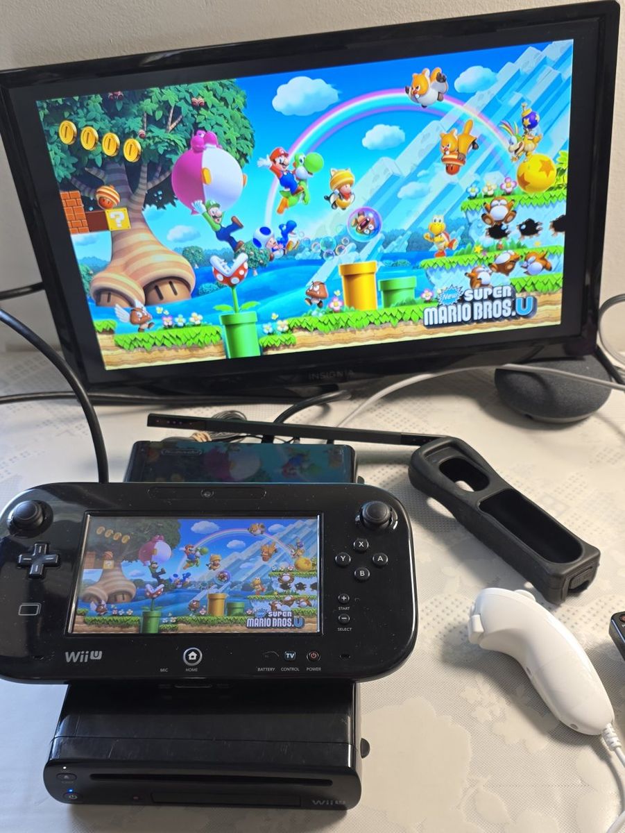 Pre-Owned Black Nintendo Wii U with 3 Games, works excellent. The issues is I forgot the password to add or remove user, but you can use Cottonball amibo, and I lost the Pad charger. Games are:\