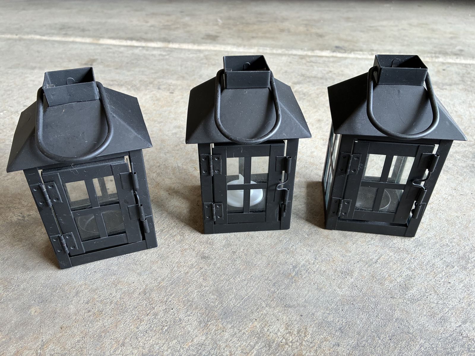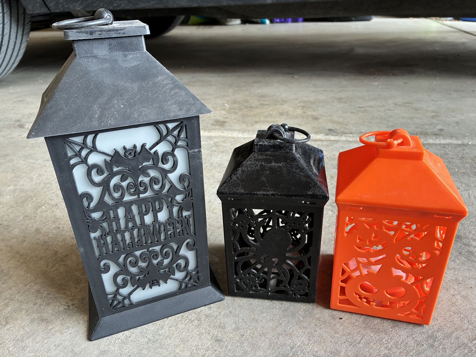 Decorative lanterns. $5 each. Mini black lanterns $5 set of 3. Larger and smaller Halloween $5 set.