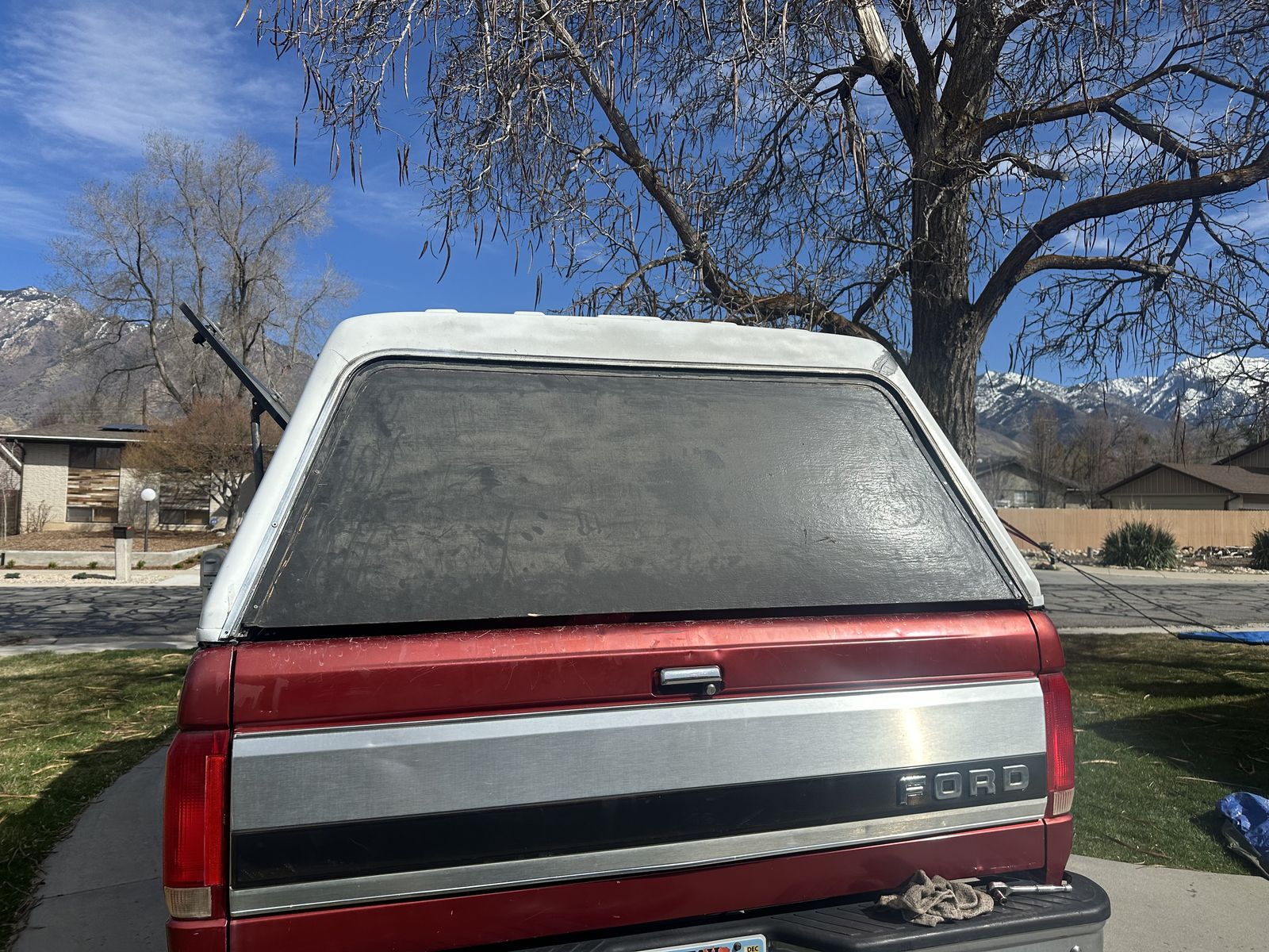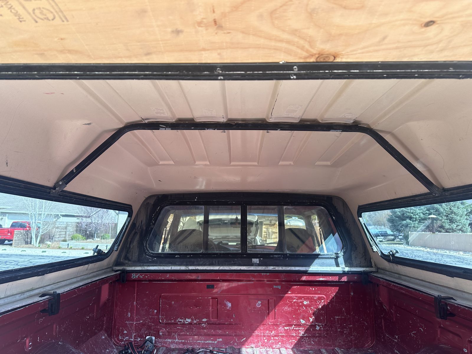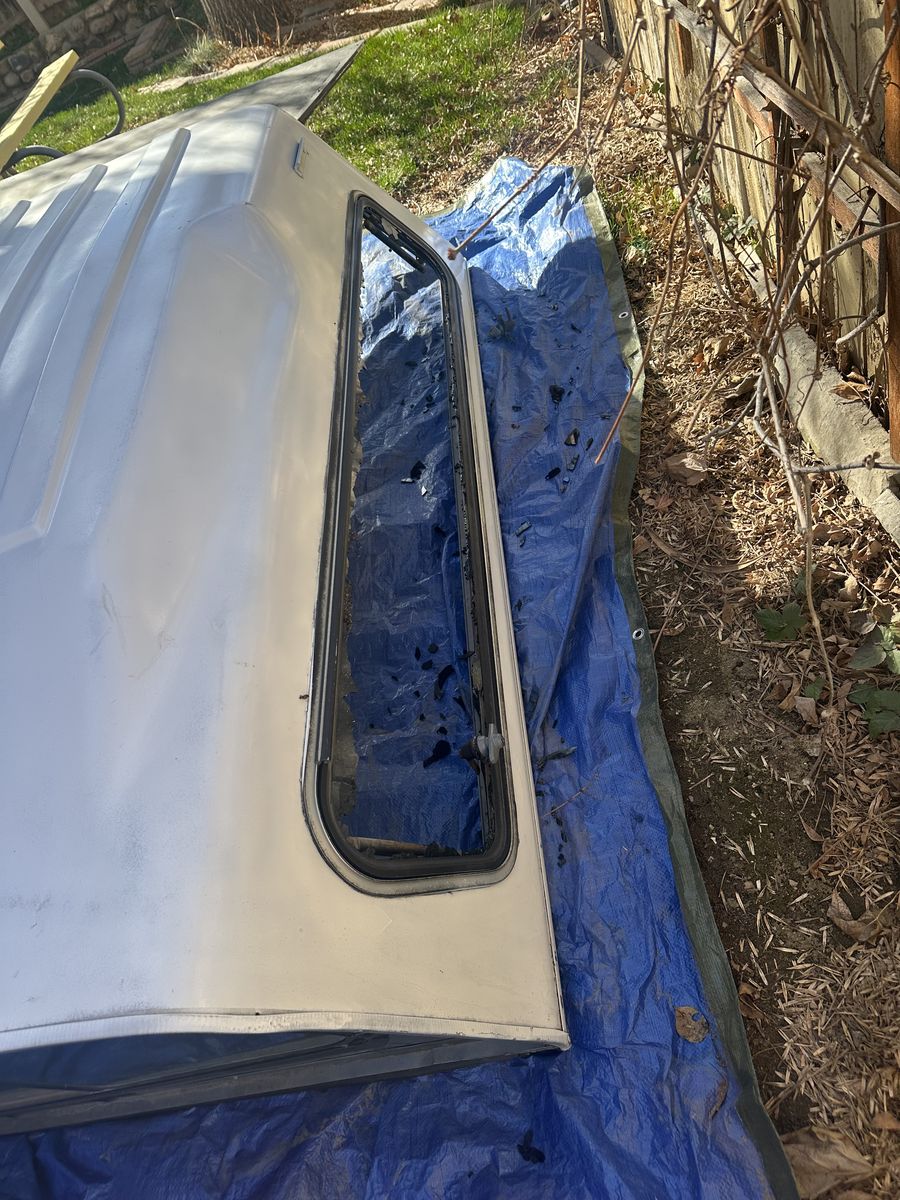 OBS truck shell, off a 96 short bed f250. A couple of cracks, back window was damaged and replaced with plywood. Side window also broken