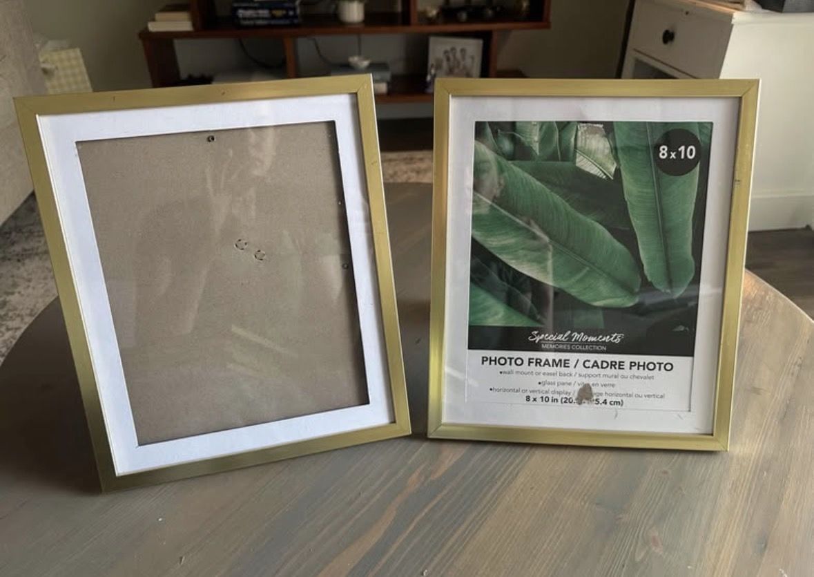 2 bigger gold frames- I put 8x10 images into them. The actual frame is 10x12