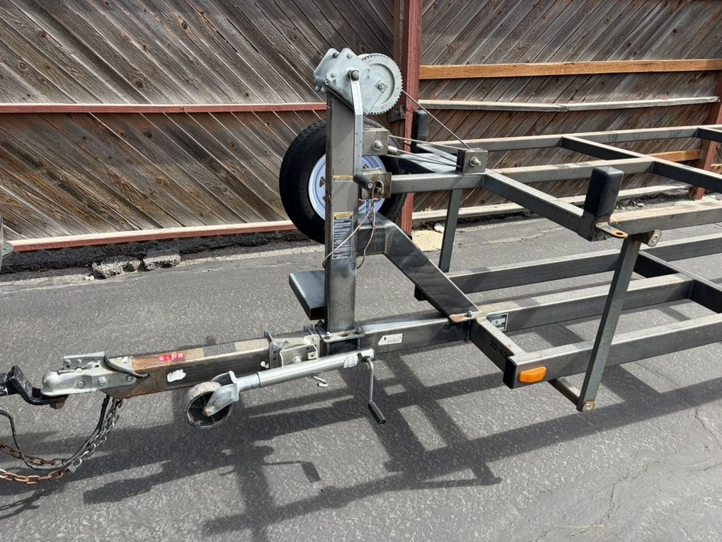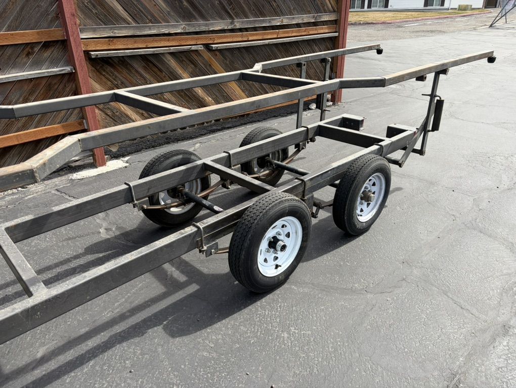 PayPalPontoon Boat Scissor Trailer, fits a pontoon boat with two toons. Will not accommodate tri-toon. Maximum boat length 26’. Will travel up to 8 hours for delivery. Bearings and electrical in good shape. Scissor trailer allows for off loading trailer on the ground and best used for shallow water launch.