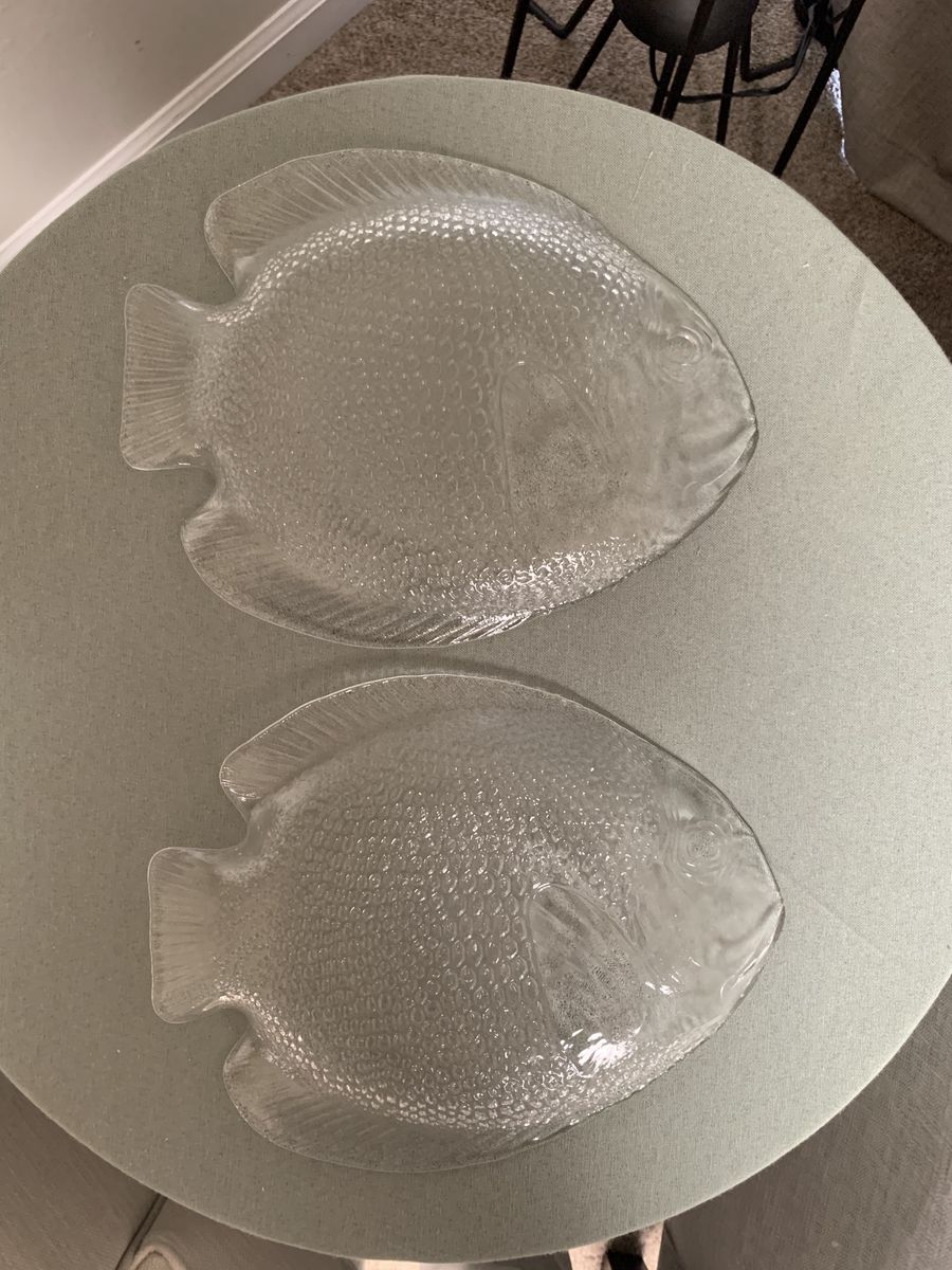 VenmoFish collectors, these are 2 nice fish plates or trinket trays. No chips/cracks. Clean. 10 1/4”L x 8 1/4”W. Venmo to hold. Non-smoking/No pet home.