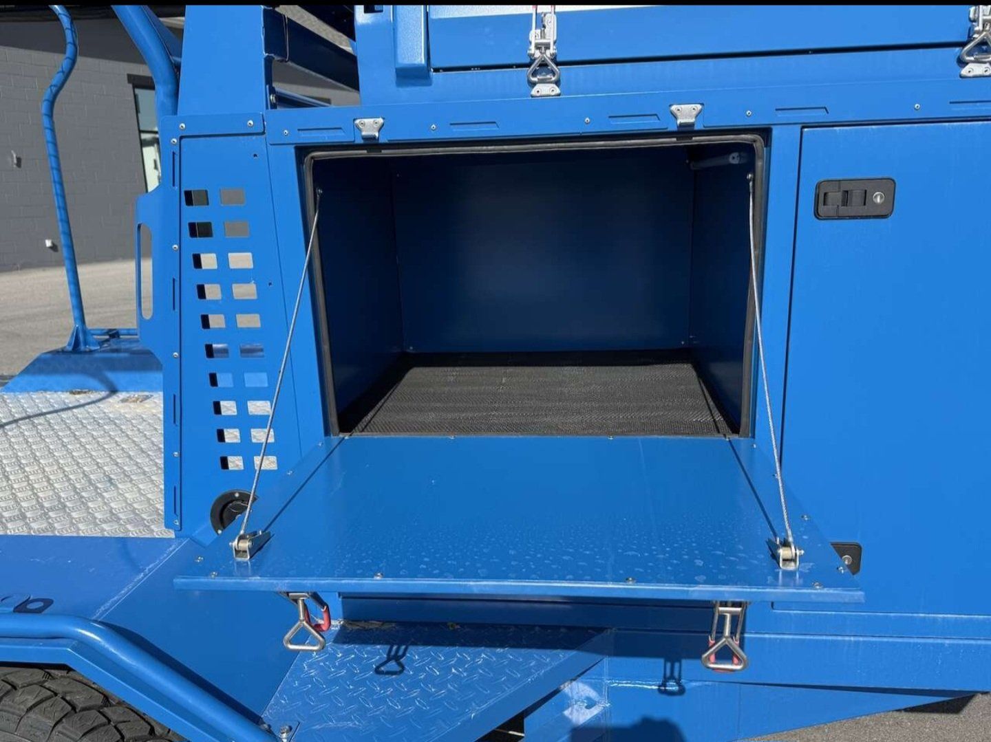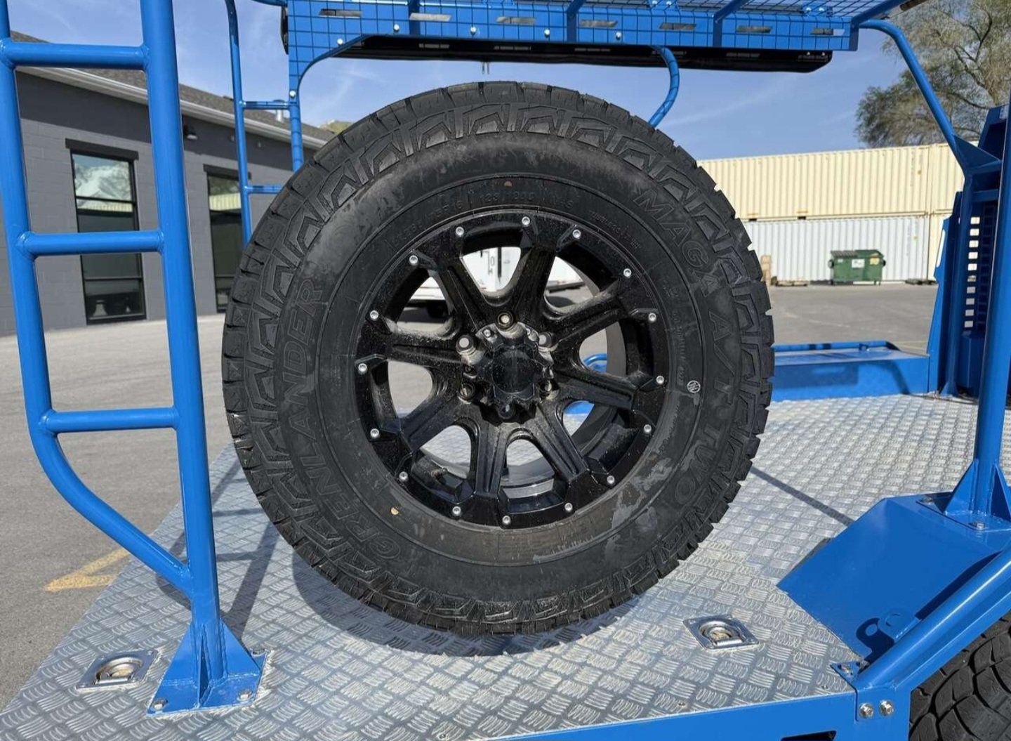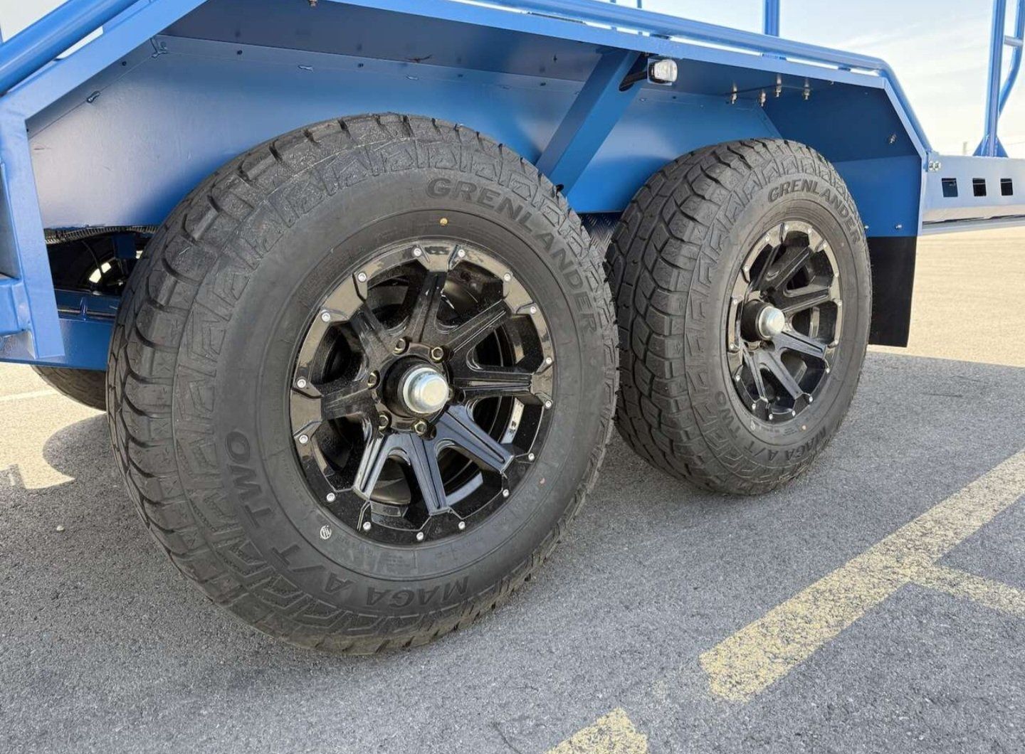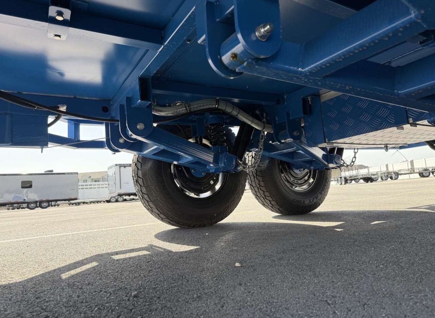 10.5’ deck 62” between the fenders 62” clearance under the rack, which is removable. Built for the rough stuff with Heavy-duty axle-less suspension that handles uneven terrain well