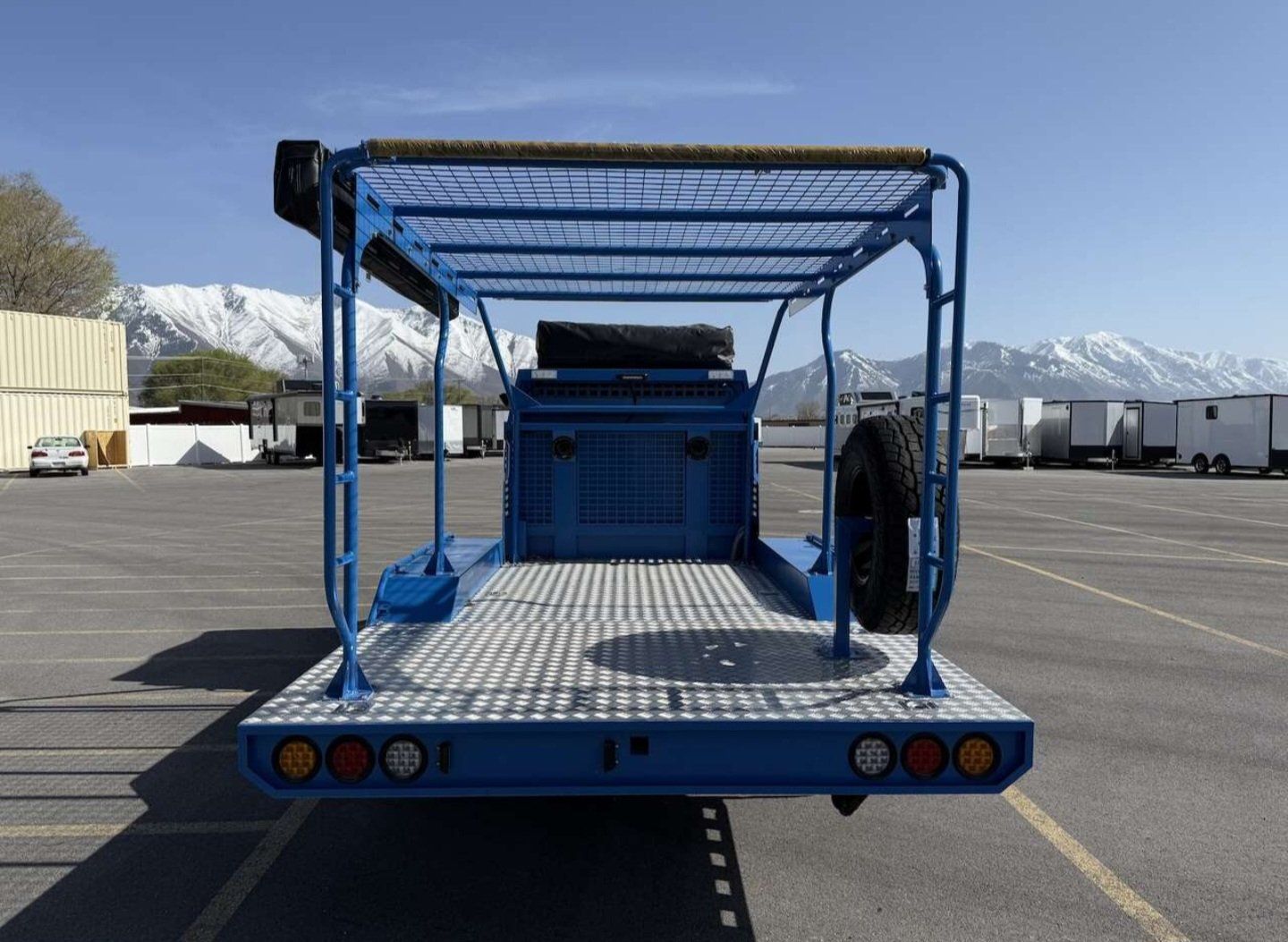 Toy-hauler deck and rooftop rack (ATVs, dirt bikes, e-bikes, kayaks, paddle boards, etc.)