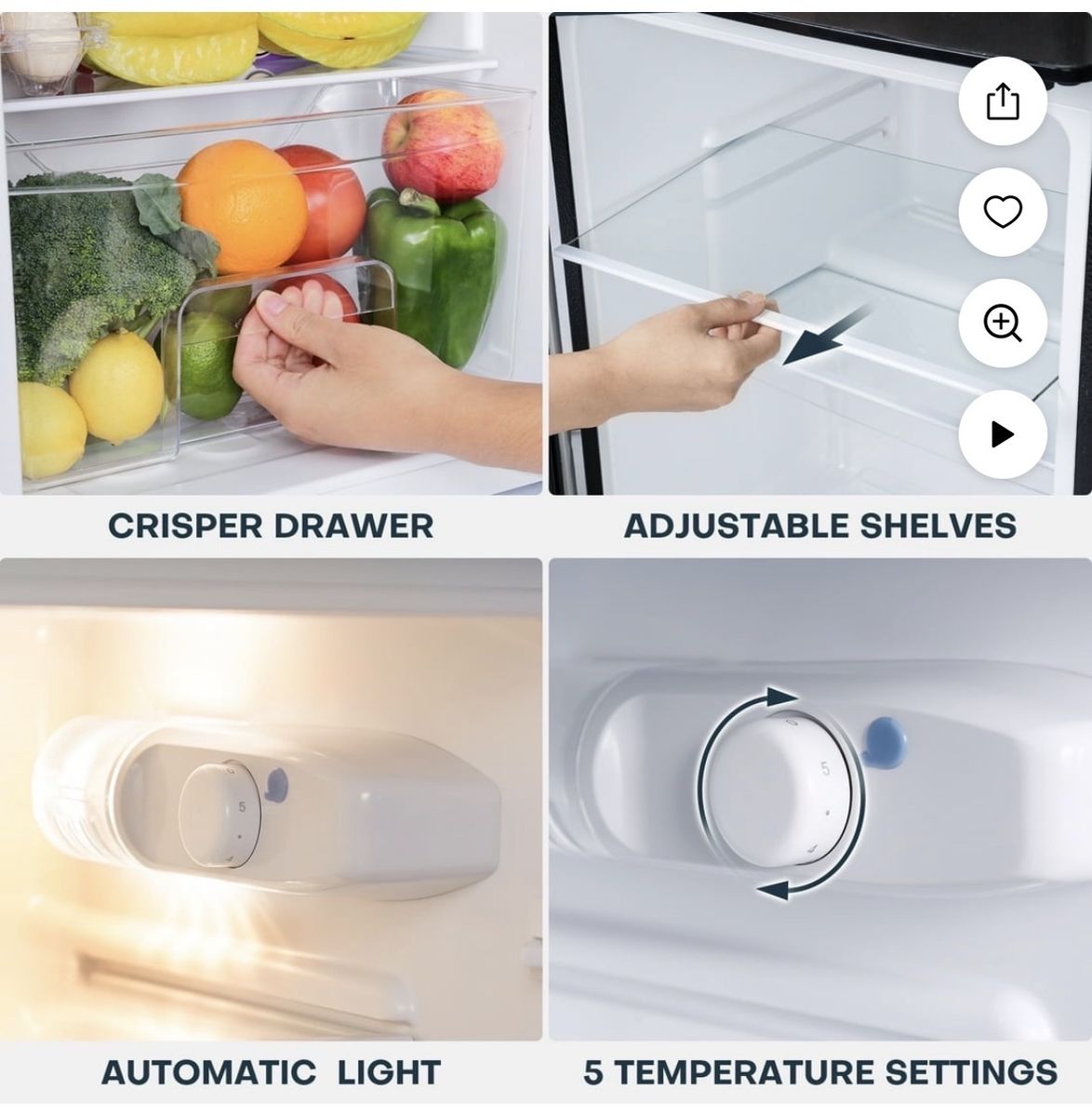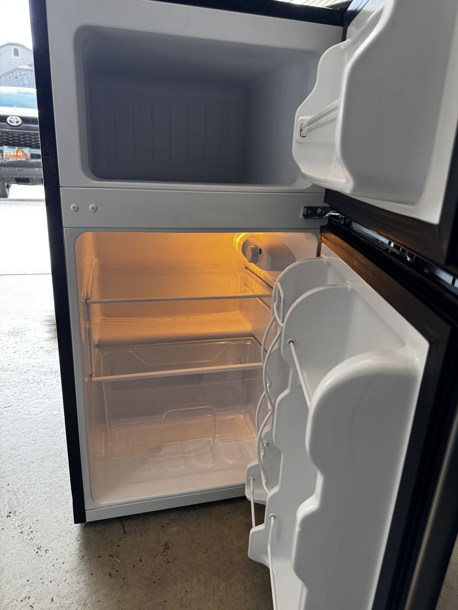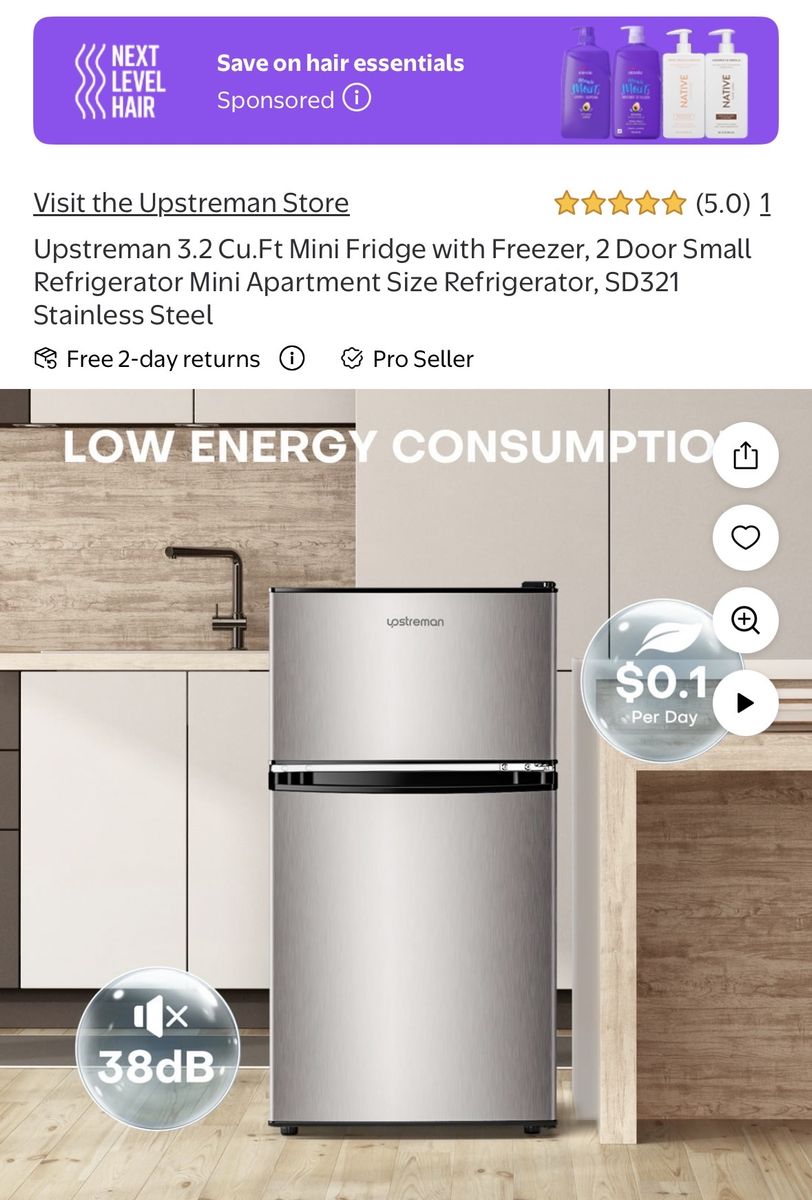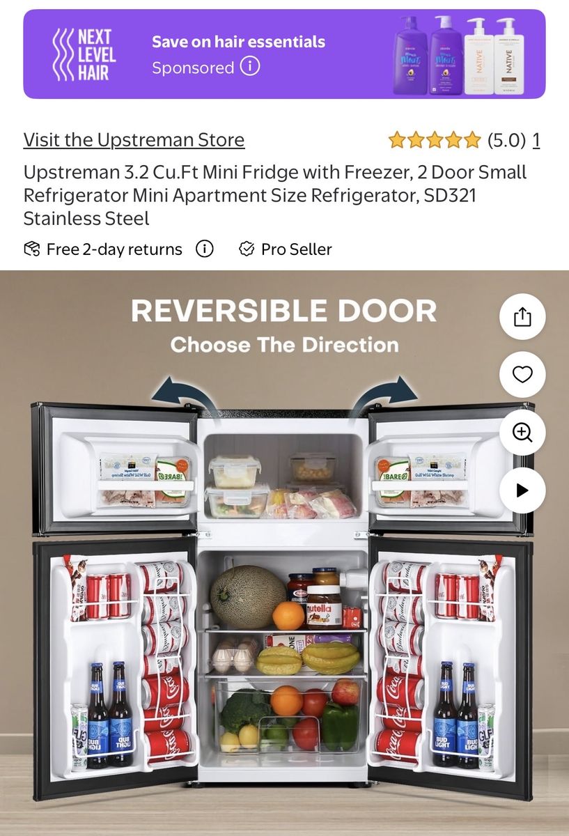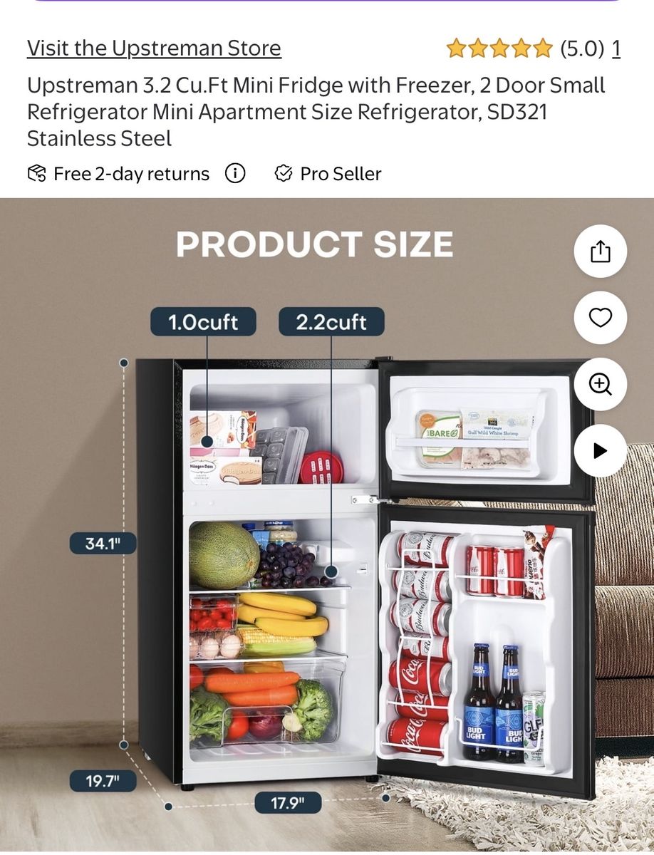Upstreman 3.2 Cu.Ft Mini Fridge with Freezer, 2 Door Small Refrigerator Mini Apartment Size Refrigerator, SD321 Stainless Steel