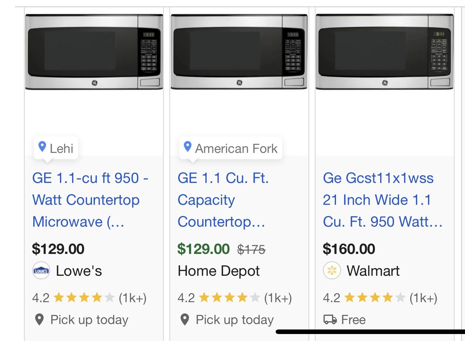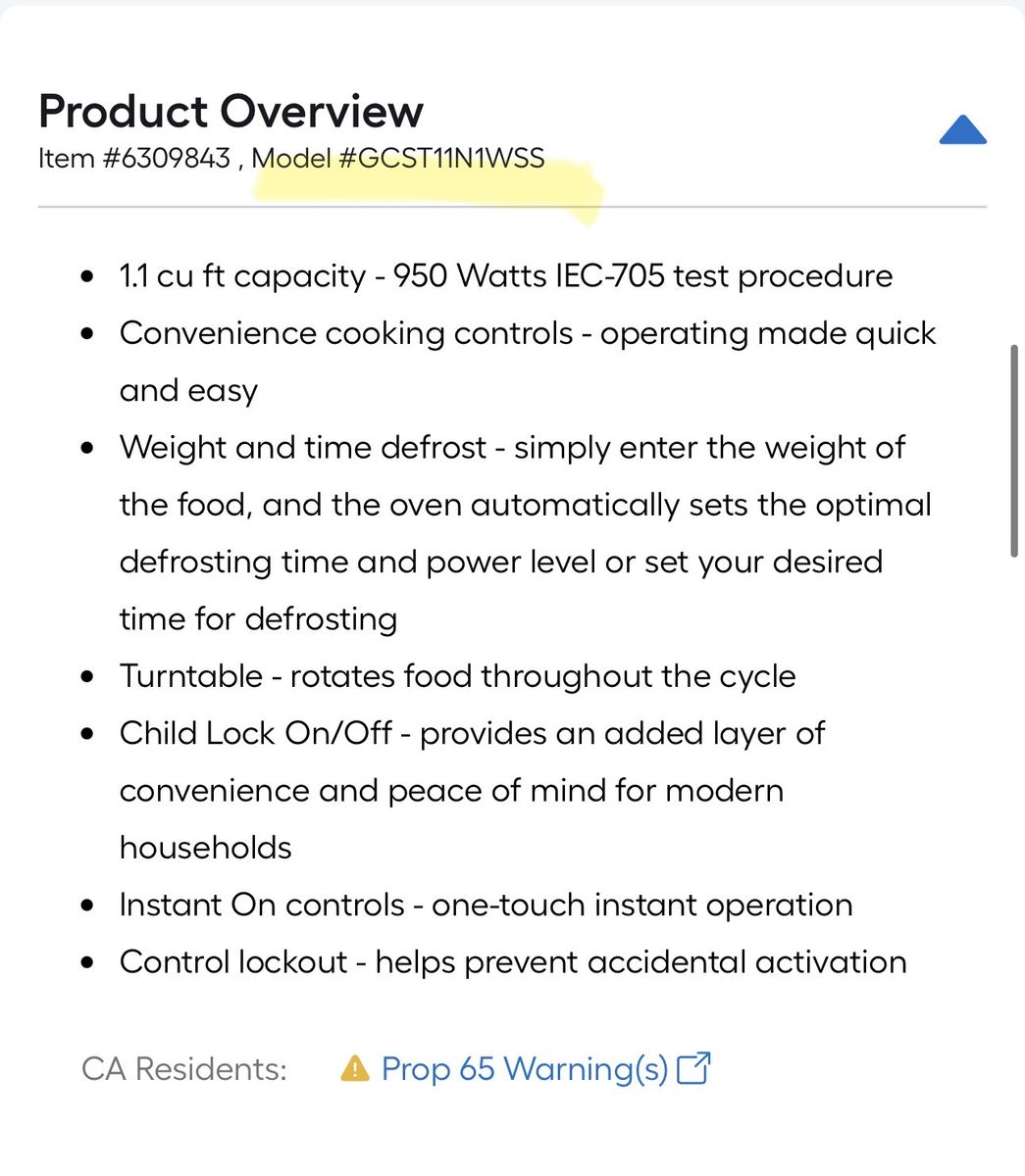 New in box. GE 1.1-cu ft 950 -Watt Countertop Microwave ( Stainless Steel )