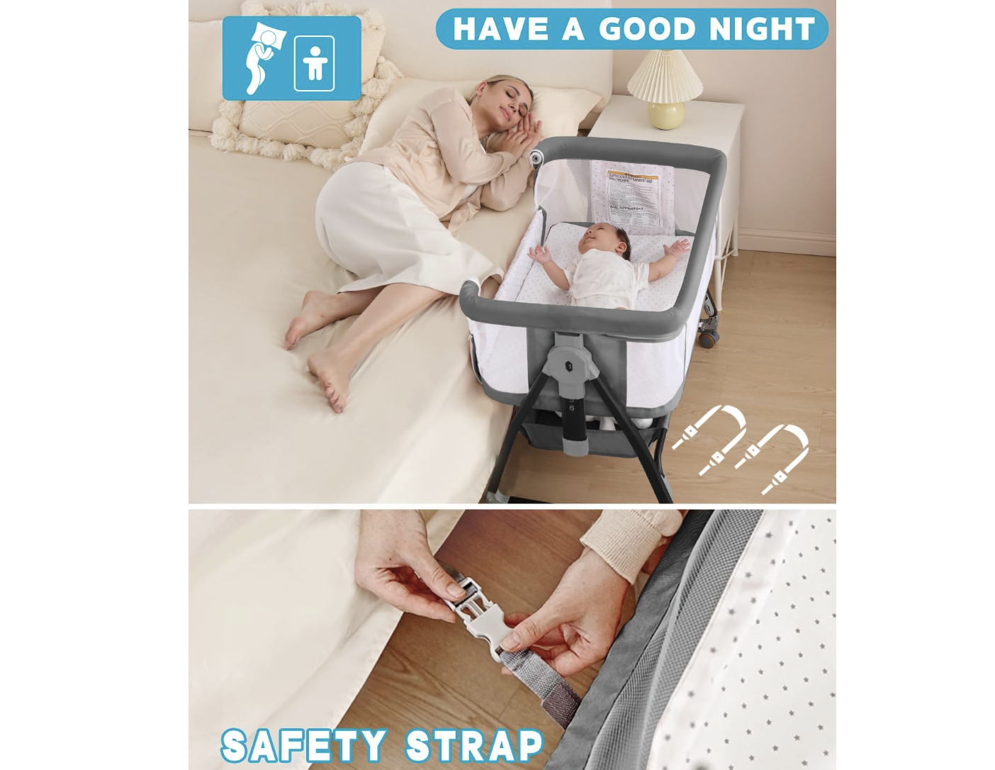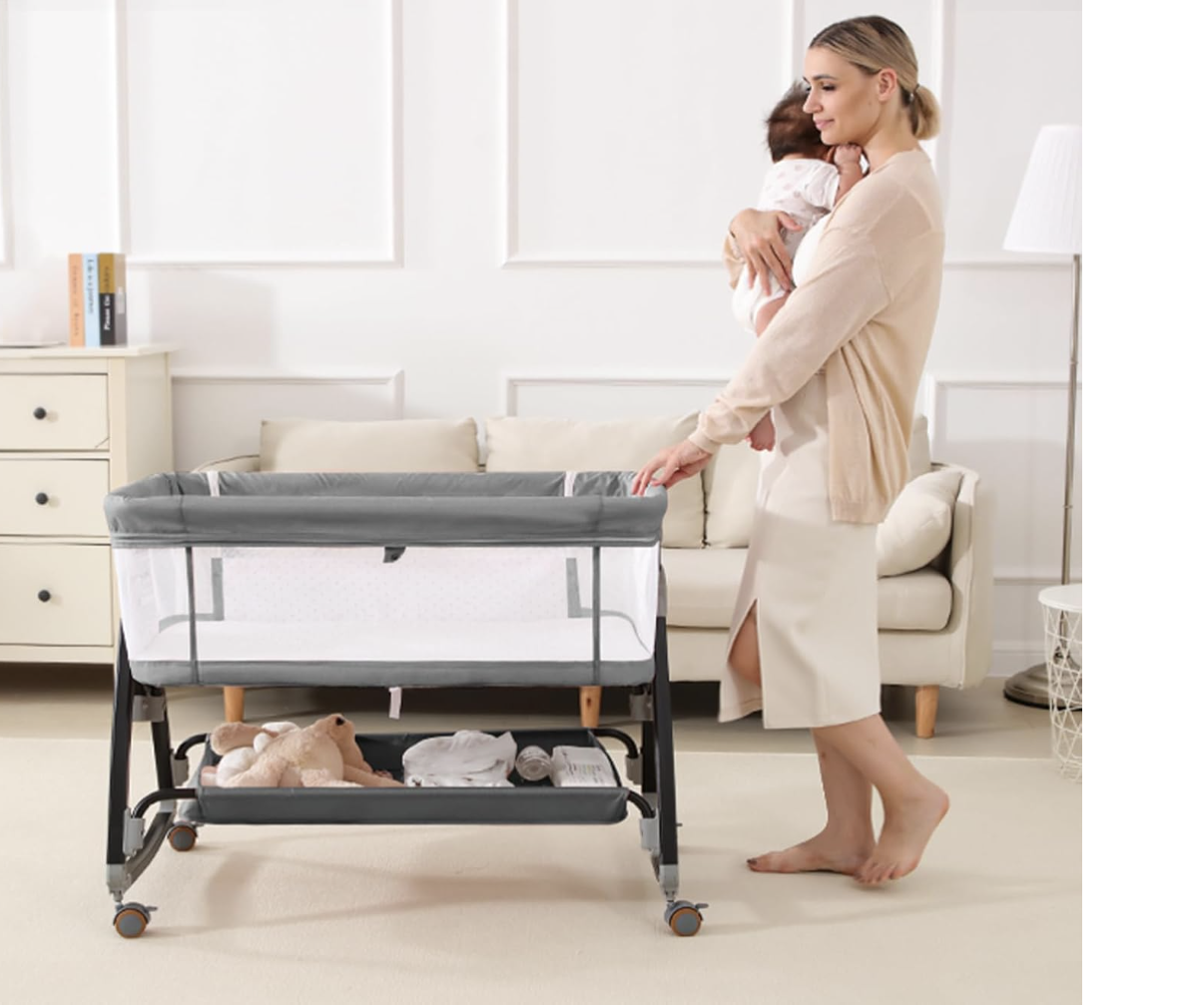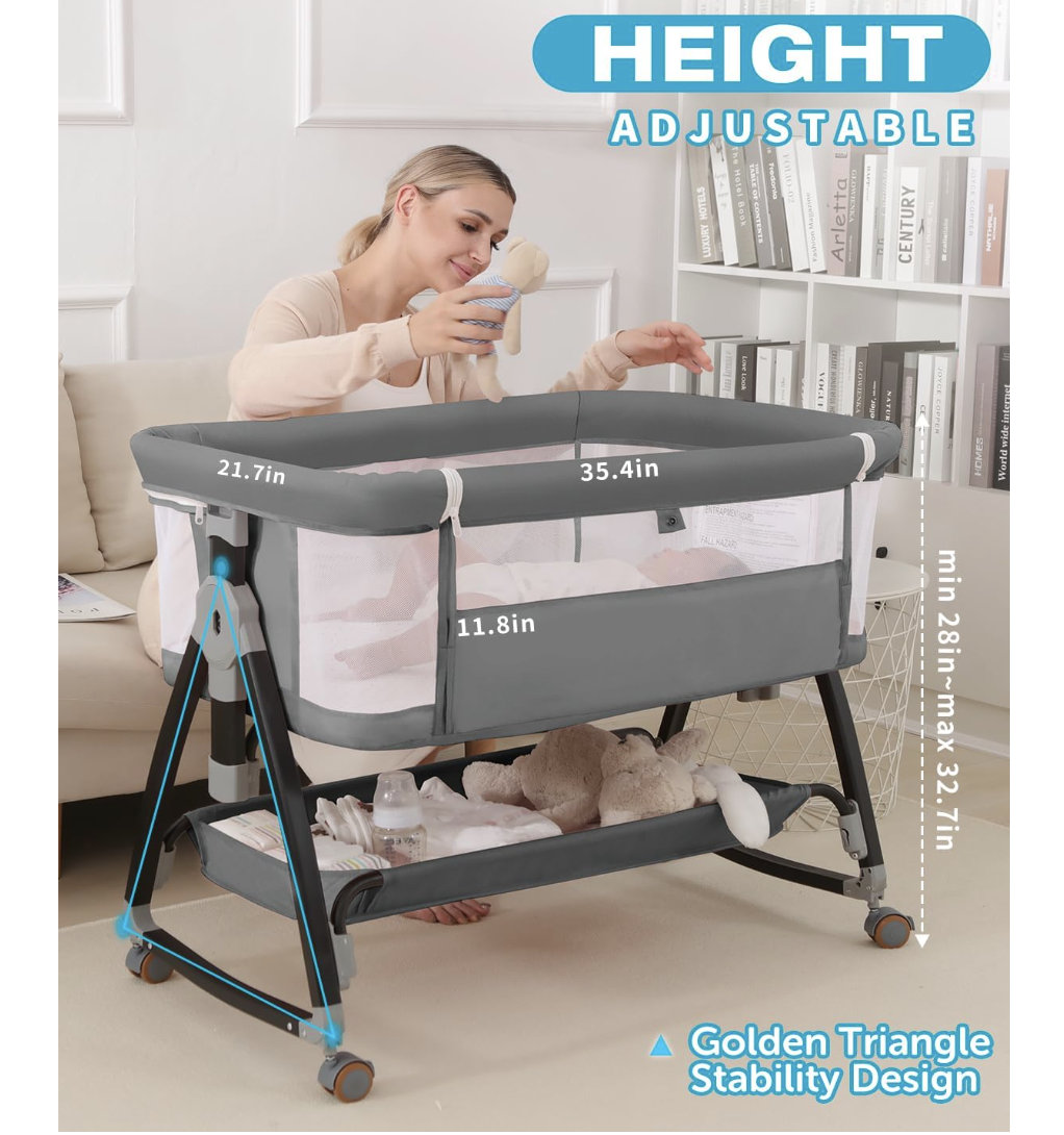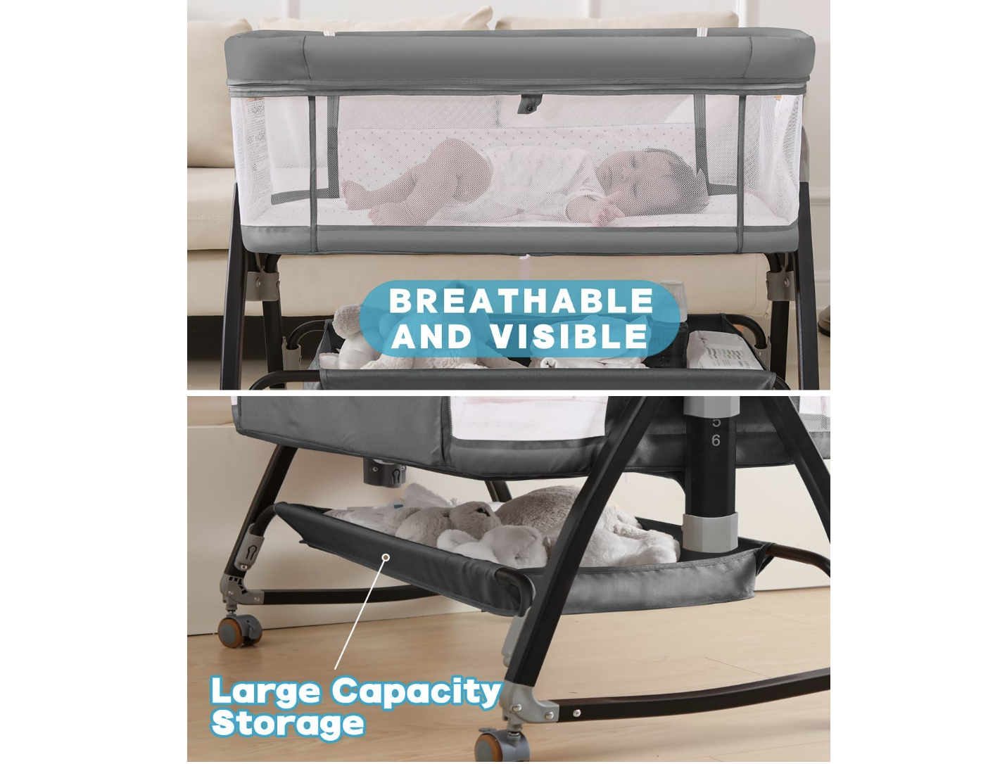Brand new in box, unassembled, Baby Bassinet, Bassinet Bedside Sleeper with Wheels, Breathable Mesh Bedside Bassinet for Baby, Mosquito Net, Storage Basket, 6 Height Adjustable, Easy to Assemble | Breathable Mesh, Mosquito Net, Large Storage Basket, 6 Height Adjustable, Easy to Assemble, Multi-functional