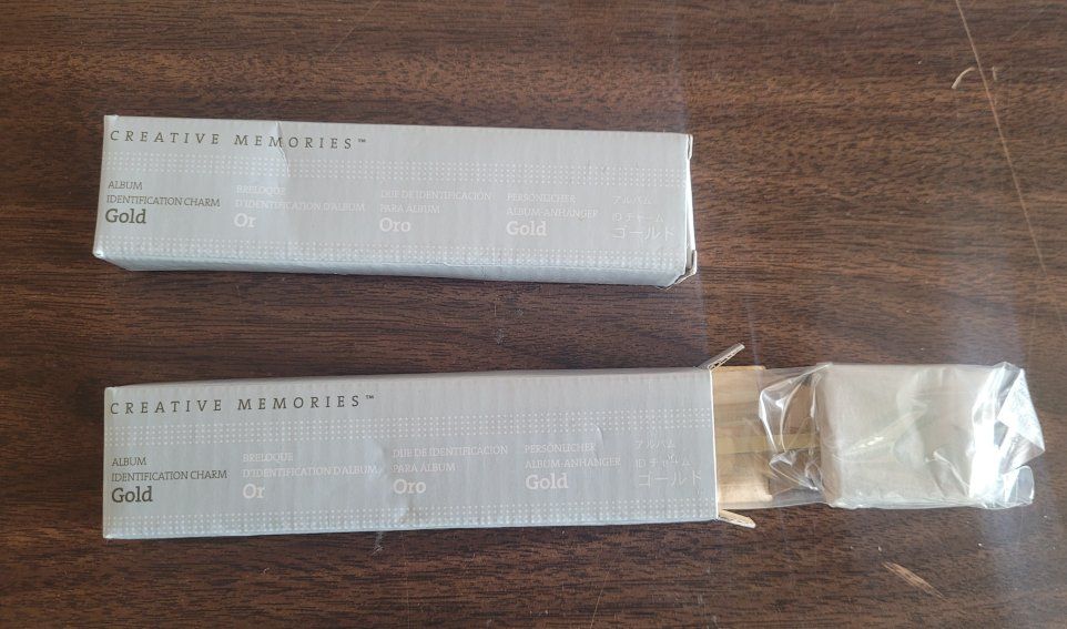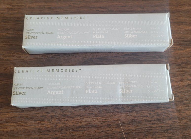 VenmoCreative Memories Gold and Silver Album Identification Charms. They are new in the boxes. 2 Silver and 2 Gold. I have 4 of these to sell, one box was opened for the picture, but they are all still sealed in the plastic. $8 each or $25 for all 4 of them.