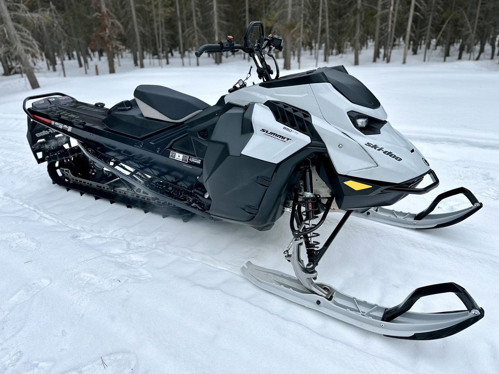 2025 Skidoo Summit Adrenaline 850 Etec 154 track with 2.5” lugs shot start. Awesome sled and will take you where you want to go. Track is in good shape, no missing lugs. Has LINQ brackets on the tunnel, heated grips, reverse, jockey box storage. Only run with 91 octane and XPS full synthetic oil. Comes with owner's manual and manual starting cord. Selling as part of a rental fleet with 2,800 miles. Clean title in hand. NO TRADES, cash only