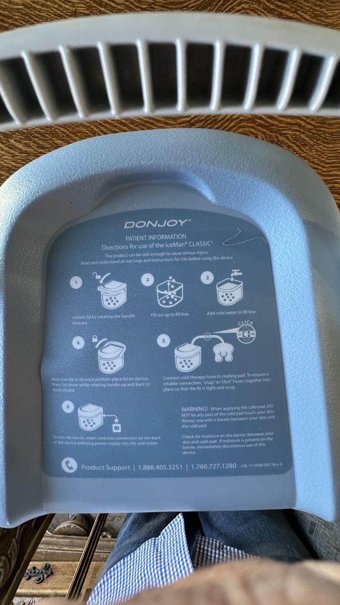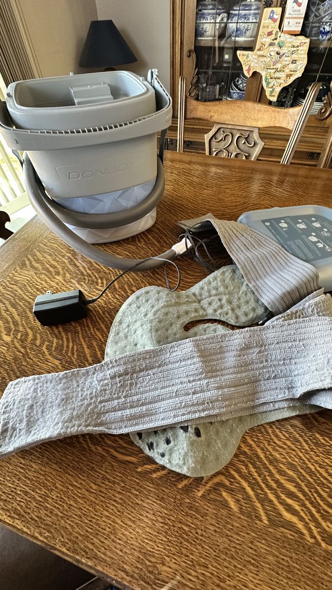 VenmoCold therapy machine. When filled with frozen water bottles and water it reduces inflammation Includes one pad for knee therapy