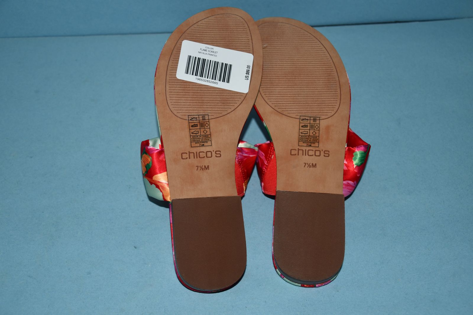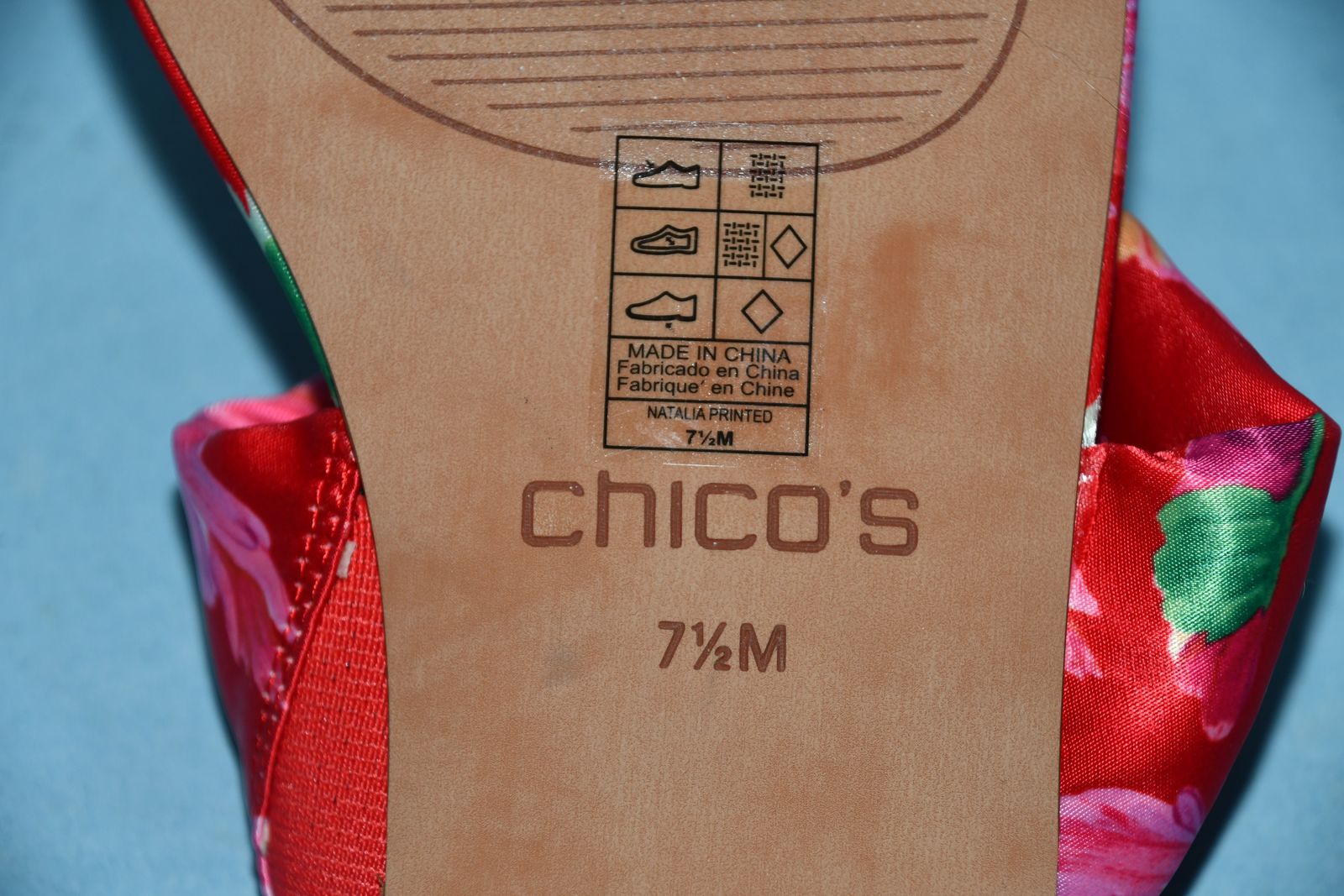 This pair of NWT WOMENS CHICO'S SANDALS are SIZE 7 1/2 M. The heel height is about 1". Our home is smoke free. PLEASE DOUBLE CHECK YOUR SIZE AS THEY ARE NOT AVAILABLE TO BE TRIED ON OR RETURNED. Questions??? Please ask. We are located in Plain City. Cash only please.