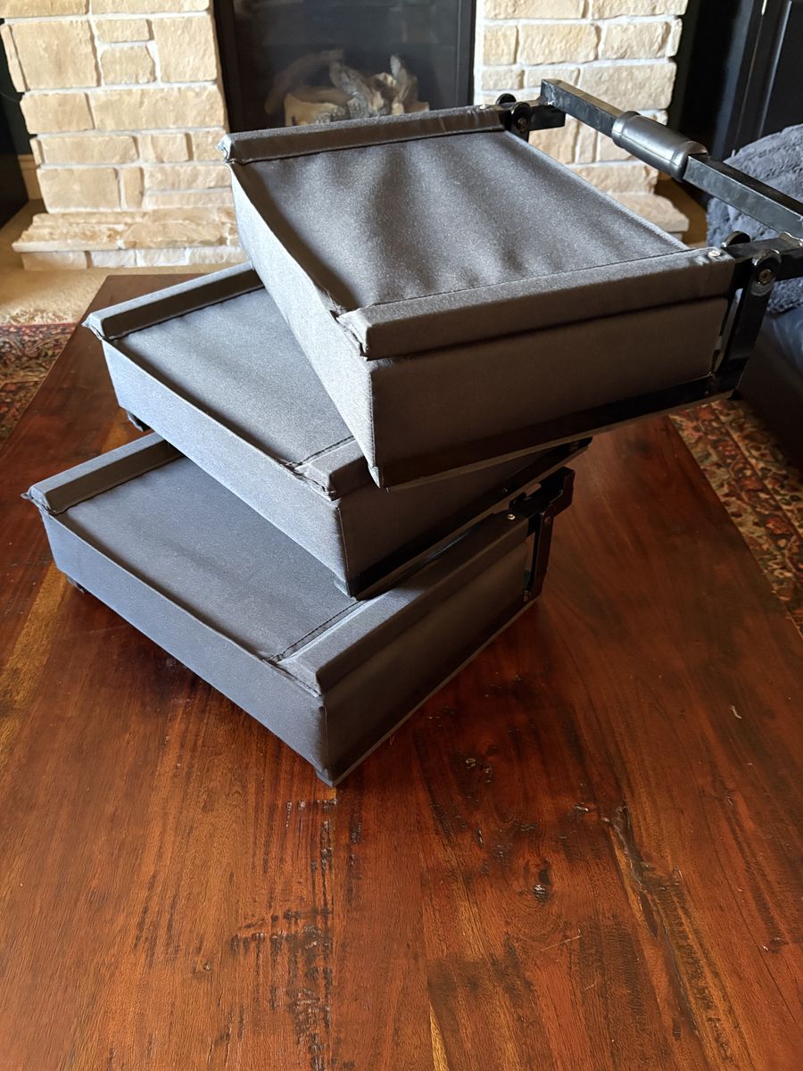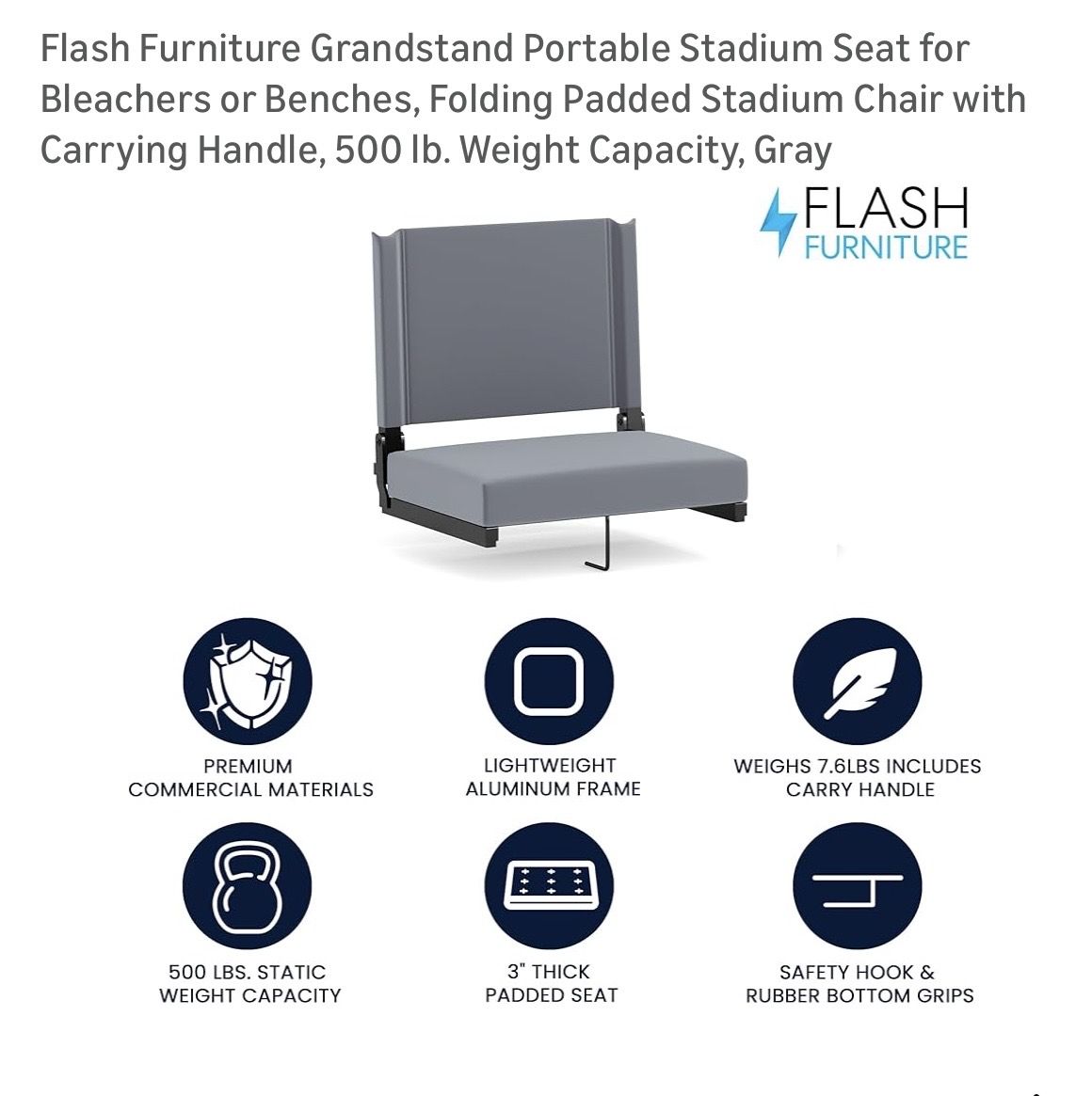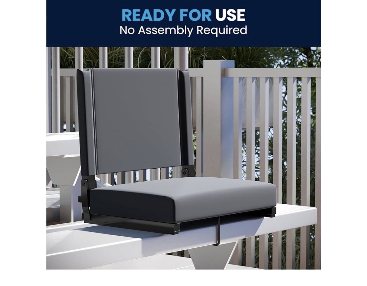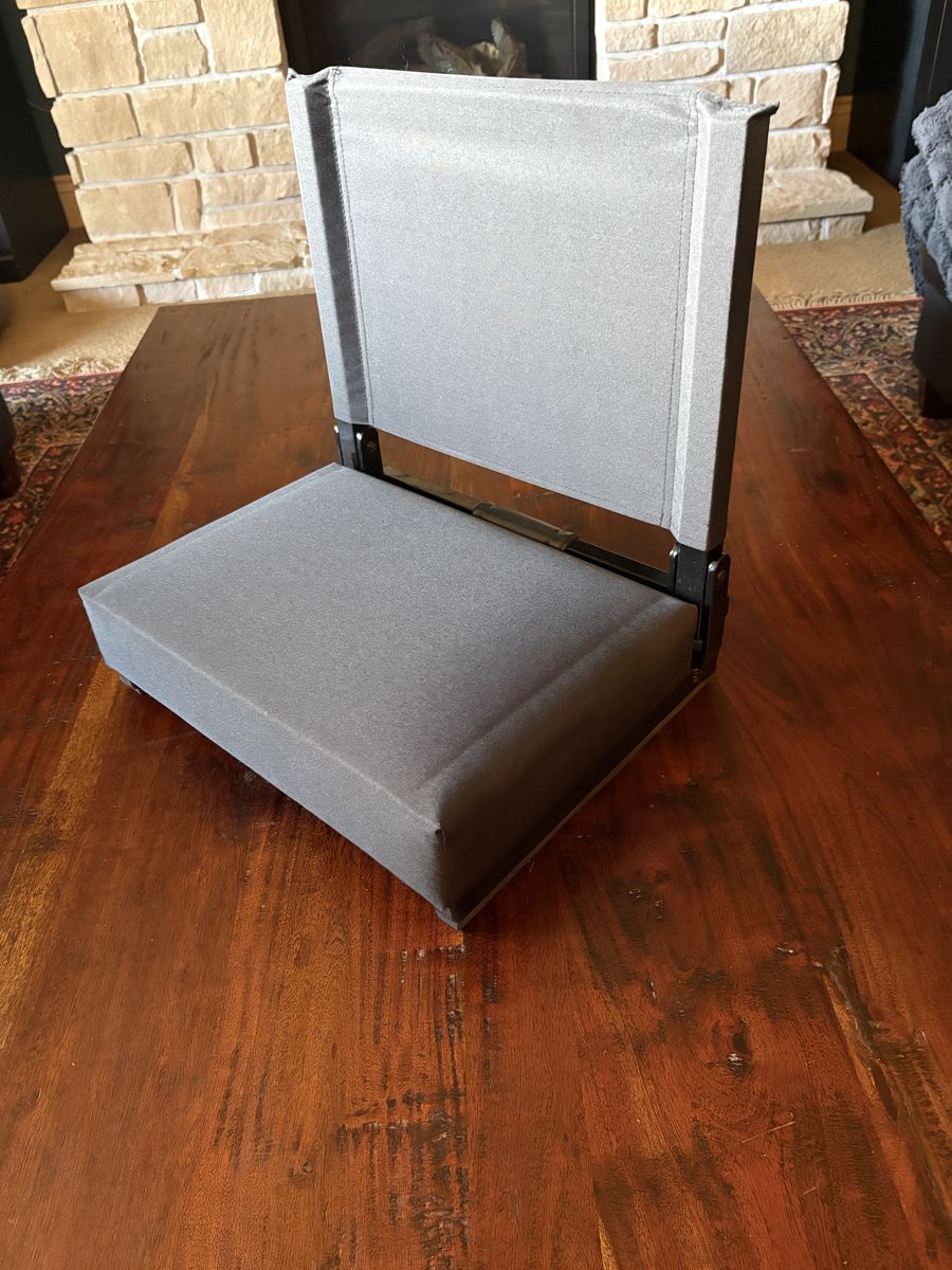 VenmoBlack folding stadium chair. 14”Dx18”Wx18”H Sold in group of 3 only. One time use. Very comfortable.