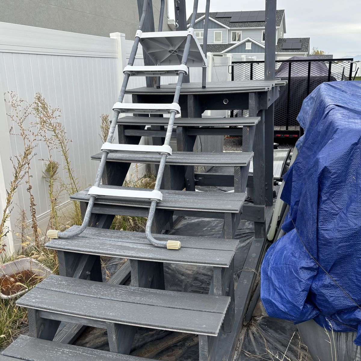 Staircase is heavy, would probably need 4-6 people to move. Currently full, would need time to drain before actual pickup. If you want disassembled, would need to do yourself.
