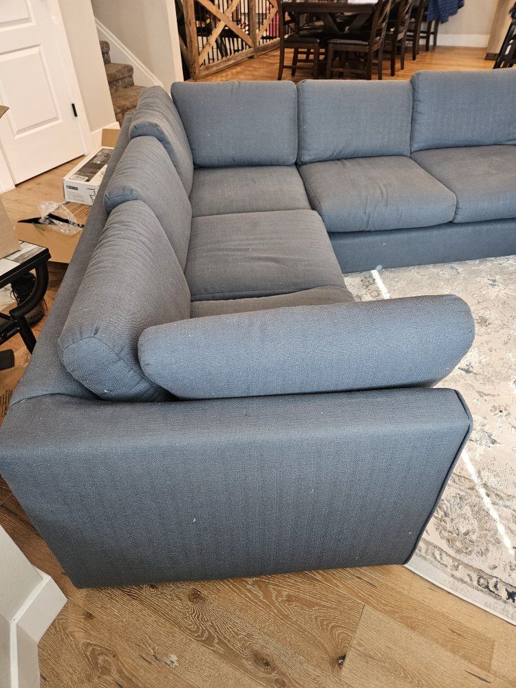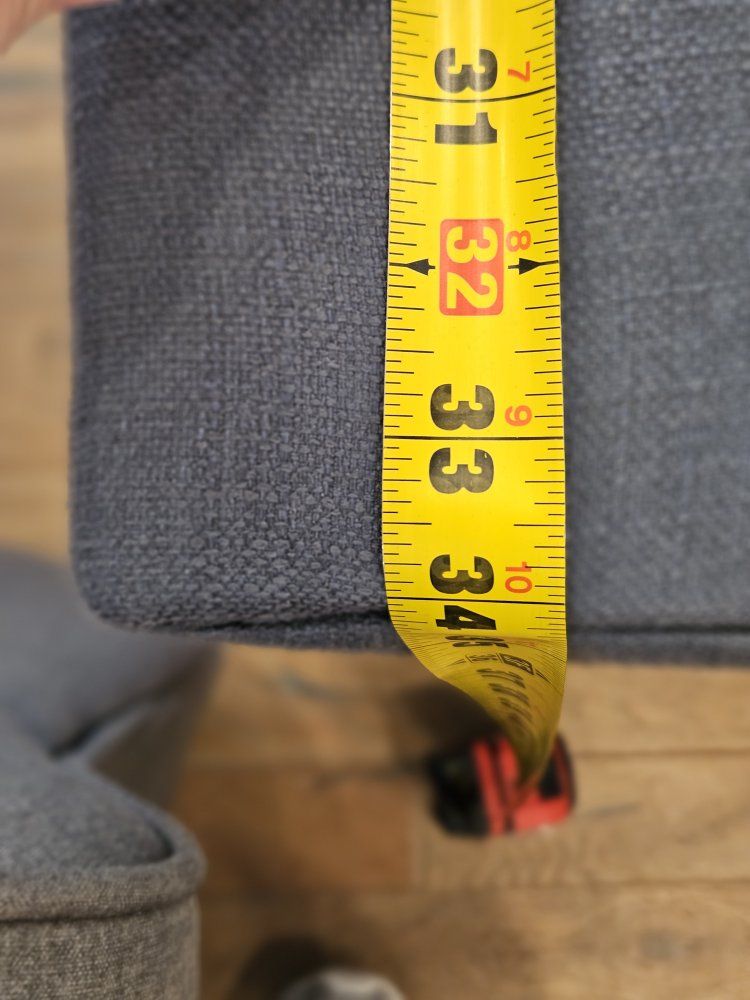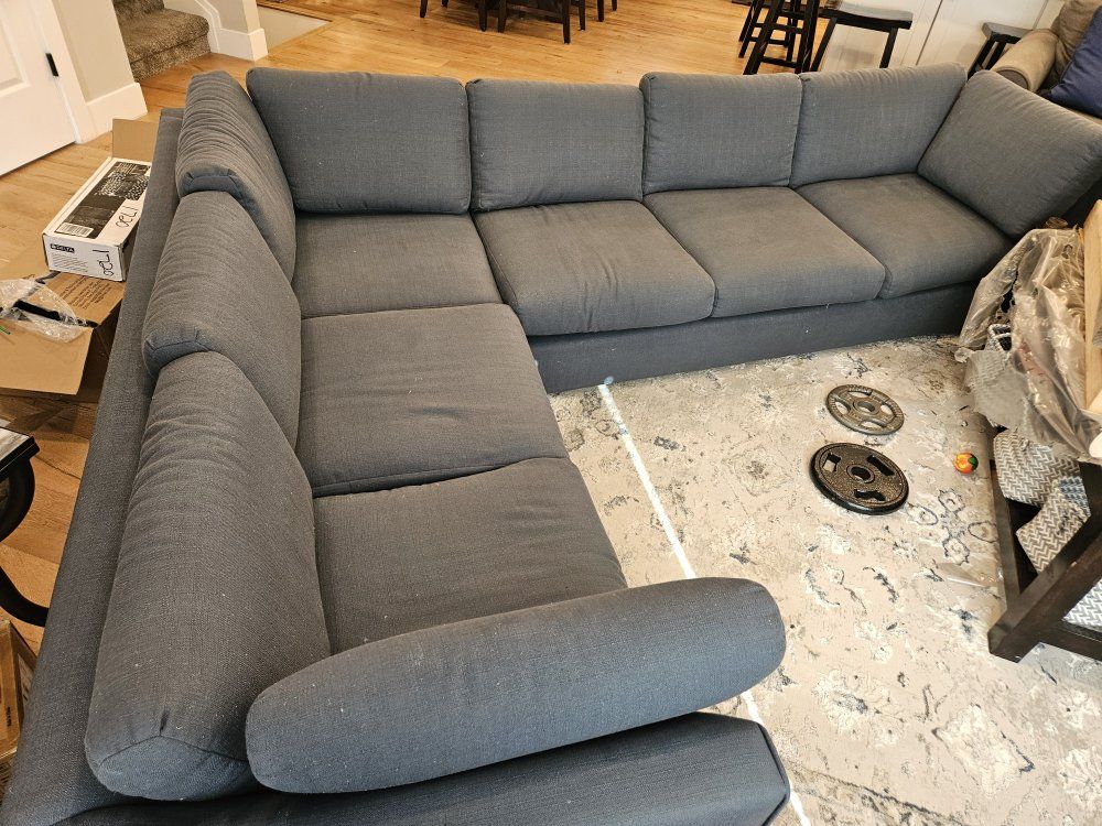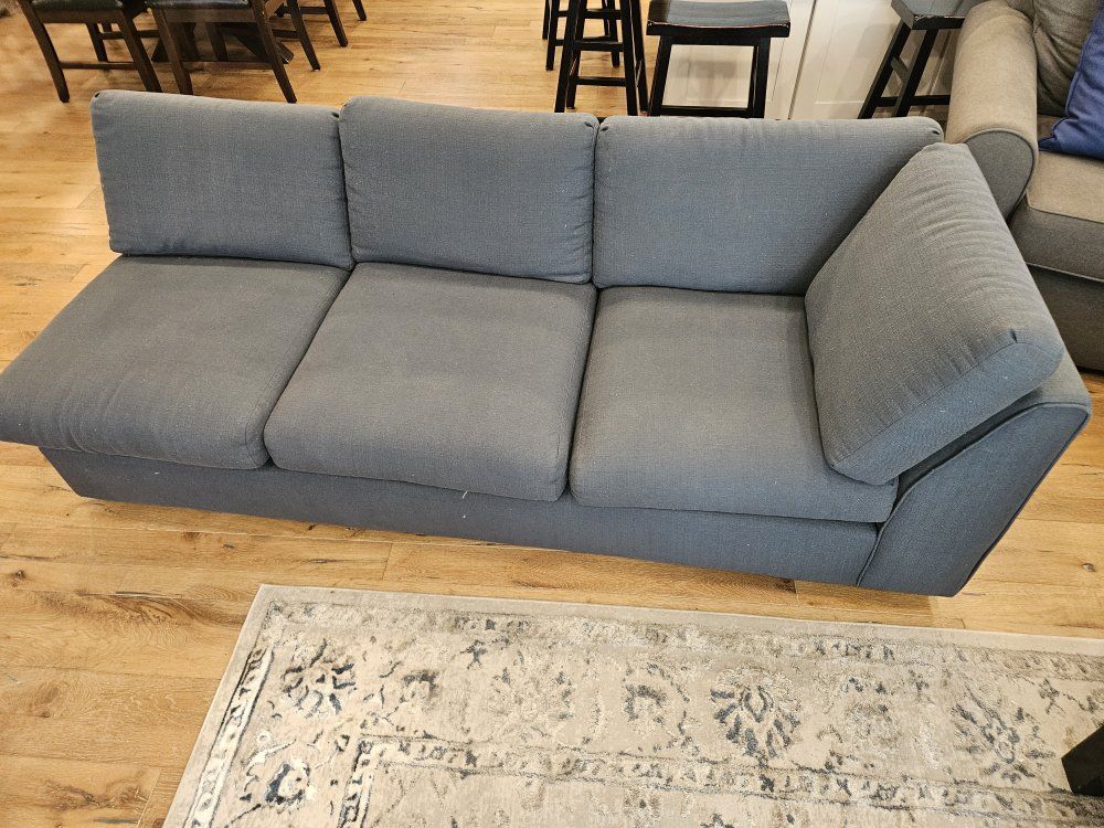 Navy Blue Sectional in good condition. Measurements in the pictures. The couch with two arm rests is longer at 86". Smoke free and pet free home.