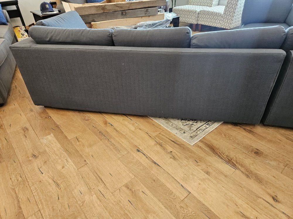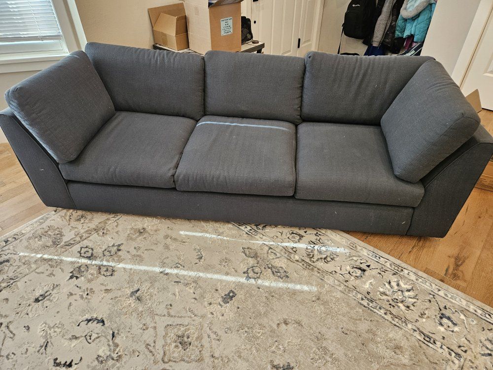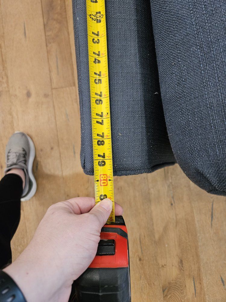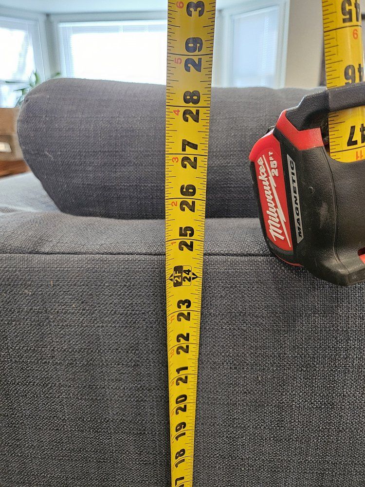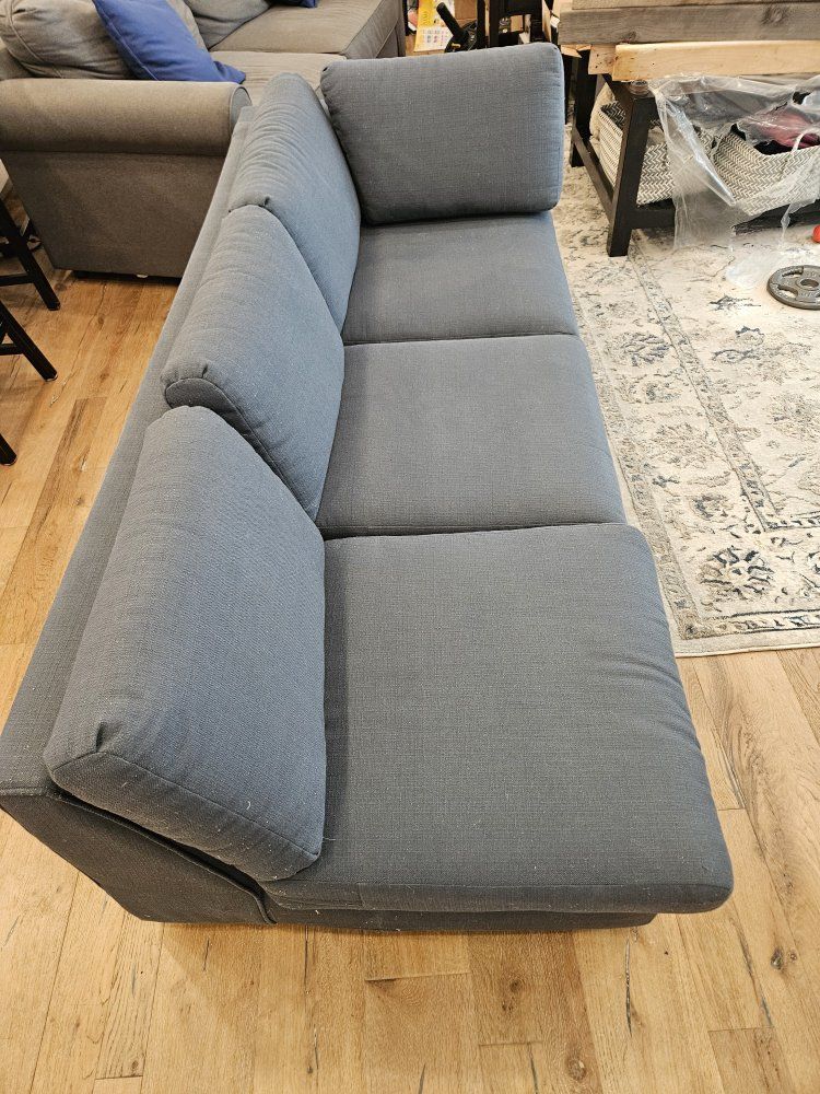 Navy Blue Sectional in good condition. Measurements in the pictures. The couch with two arm rests is longer at 86". Smoke free and pet free home.