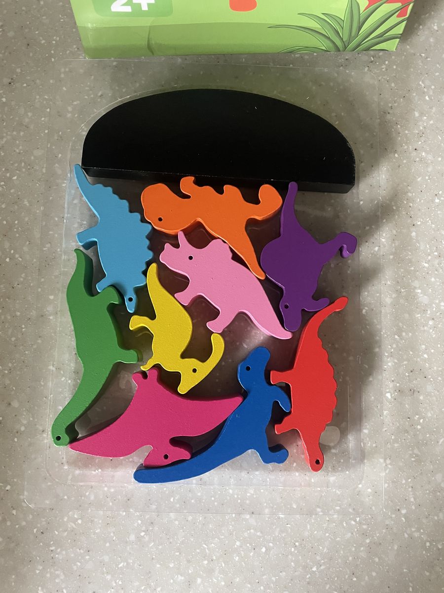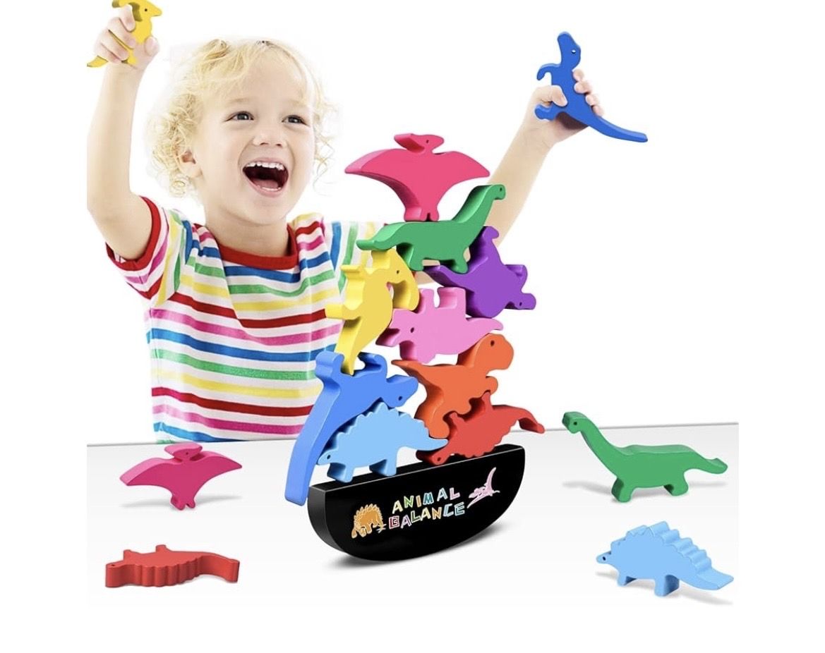 VenmoDinosaur-themed wooden building blocks designed for children ages 2 and up. • Design: Features colorful, realistic-looking dinosaur shapes. • Functionality: Pieces are designed to stand up on their own for active, imaginative play. • Benefits: Designed to help toddlers develop fine motor skills, color perception, and dinosaur cognition. • Material: Constructed from durable, nontoxic wood.