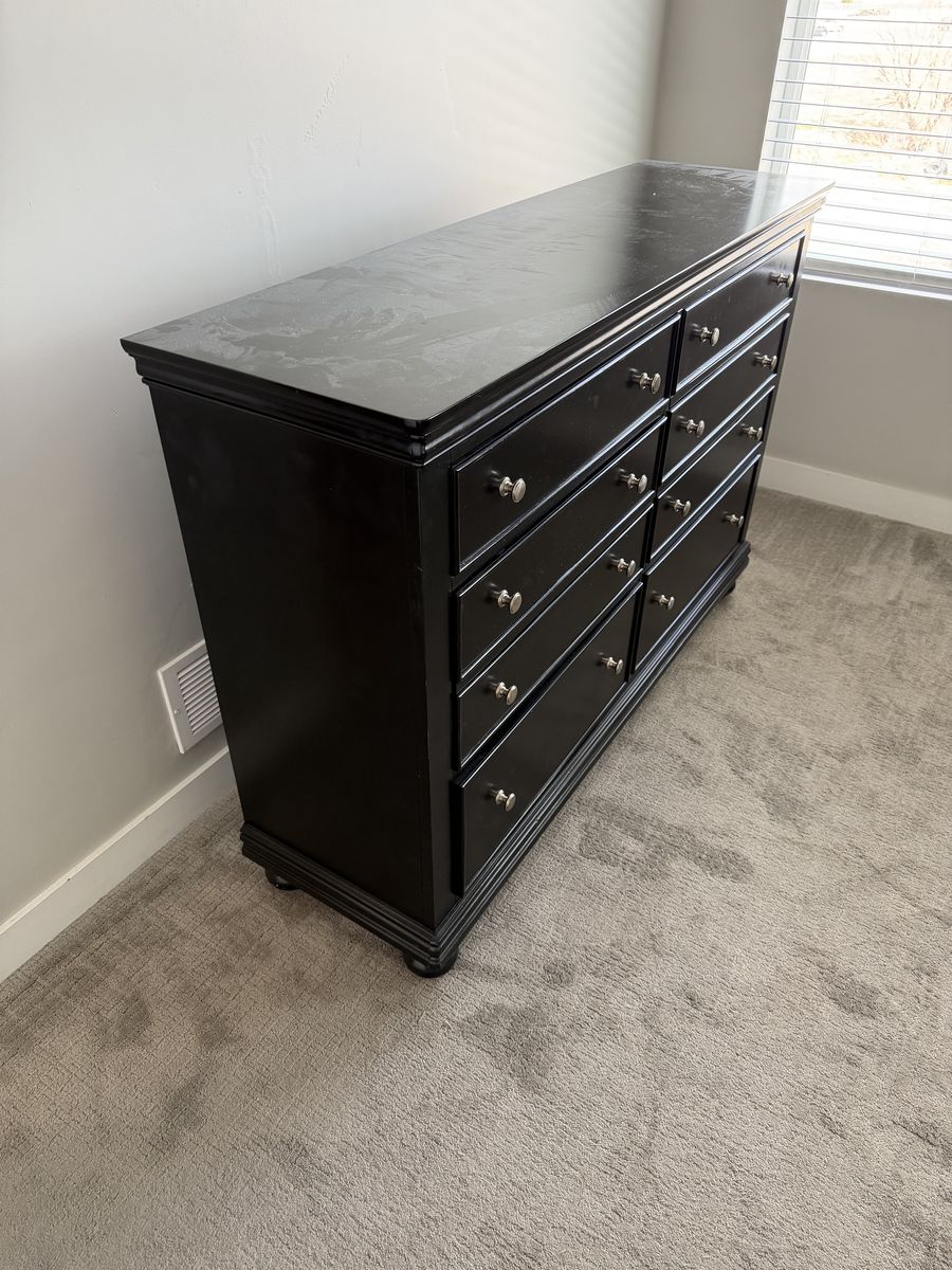 Venmo$575 OBO. Queen Furniture Set. Moving out and don’t need it anymore. There is also a mirror that goes with the dresser that is not pictured. This is great furniture and in good condition. One nightstand had a little chipping on the top.