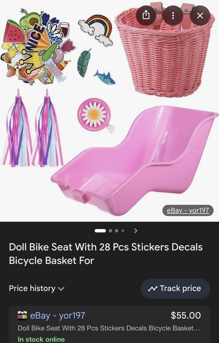 VenmoDoll Bike Seat with 28 Pcs Stickers Decals Bicycle Basket for Handlebar Streamers.