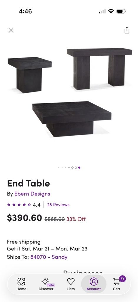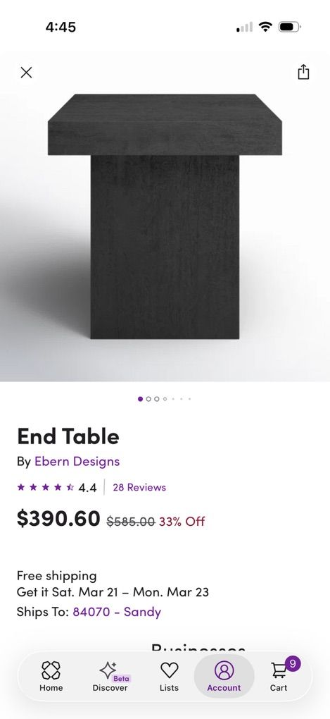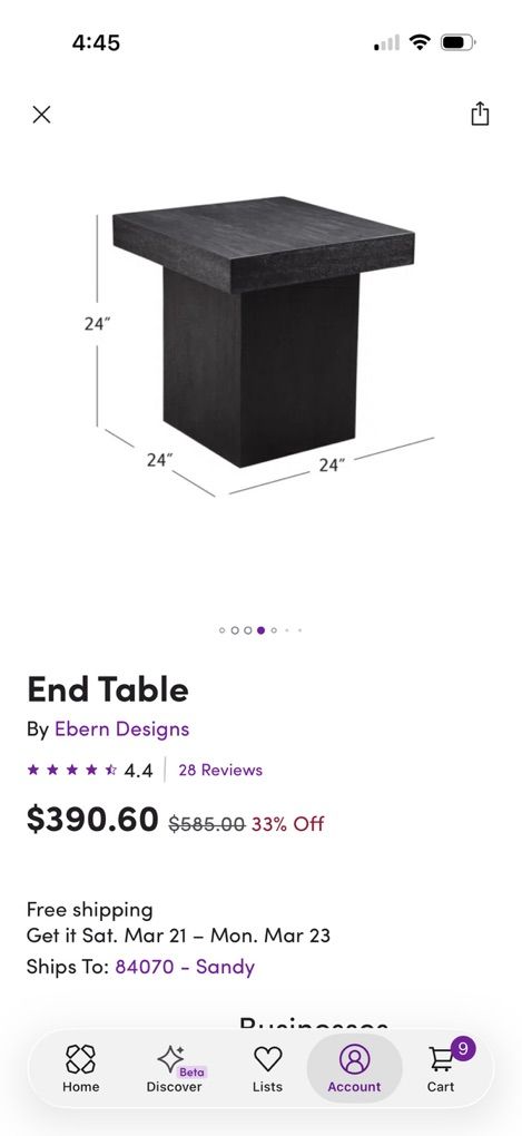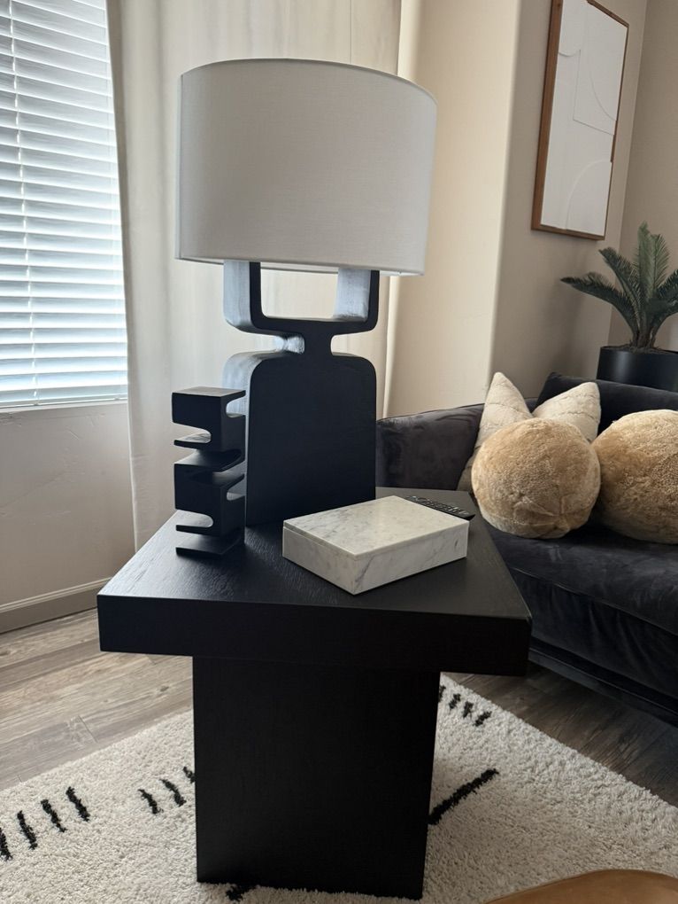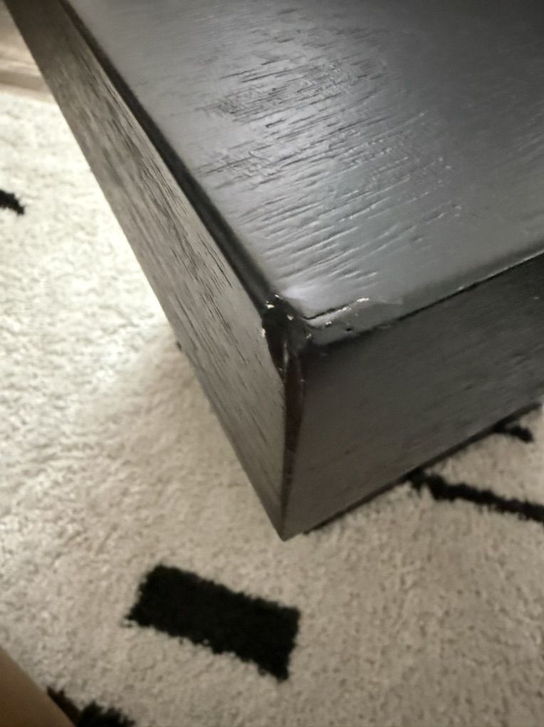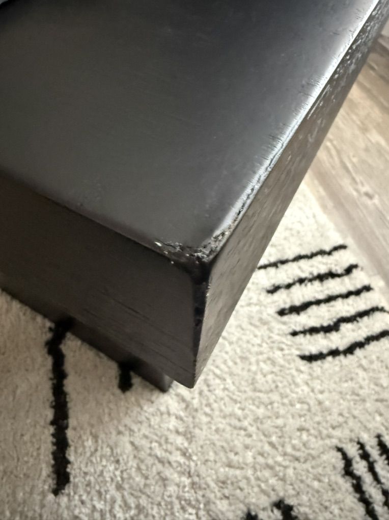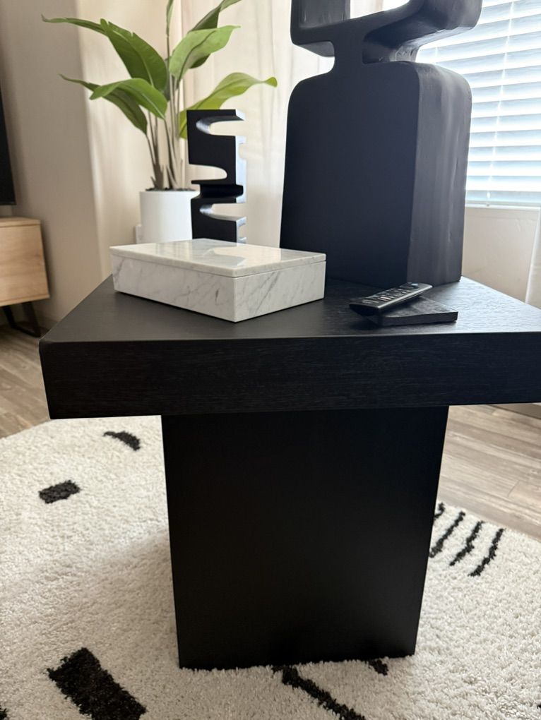 VenmoAttention: the table has two small dings one on each corner. I took pictures of them. They’re barely noticeable though when you’re end table is placed right. This square end table brings a trendy twist to your living space with its clean lines and contemporary design. Crafted from solid and engineered wood with mango veneers, it features a dusty matte finish that adds a laid-back vibe to your decor. The block base offers a solid foundation, while the minimalist design makes it a versatile piece that fits seamlessly into any room. Whether you're placing it next to your sofa or using it as a nightstand, this table is ready to hold your favorite books, a stylish lamp, or a cup of coffee