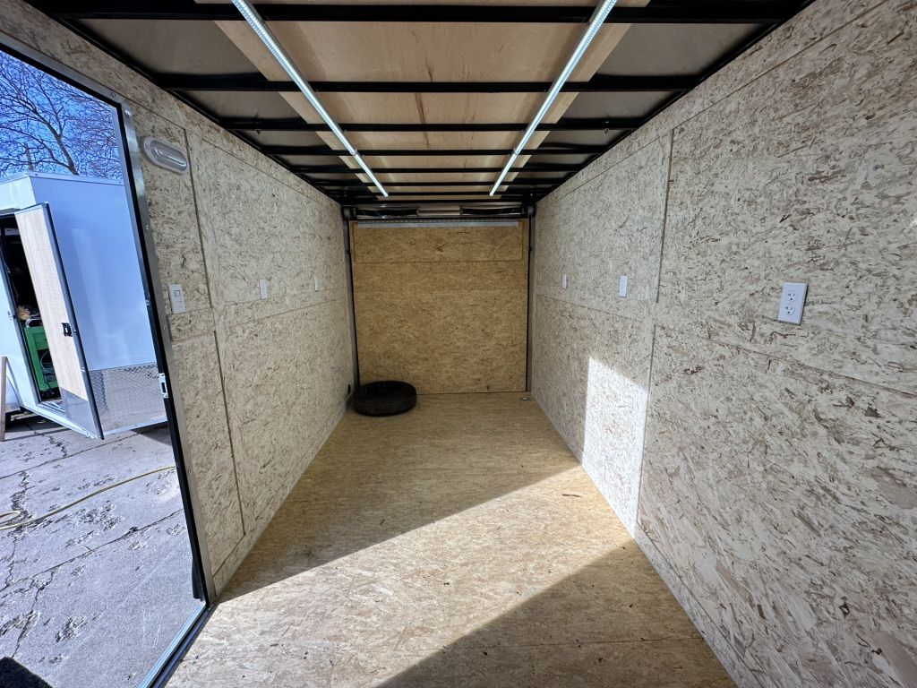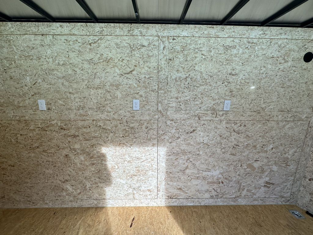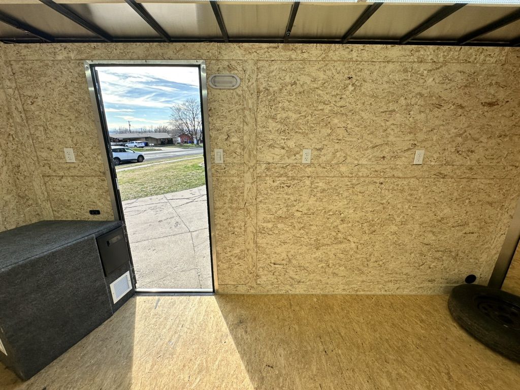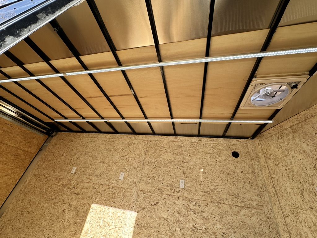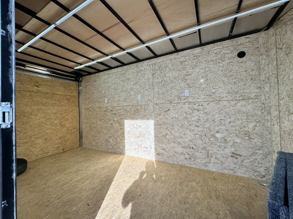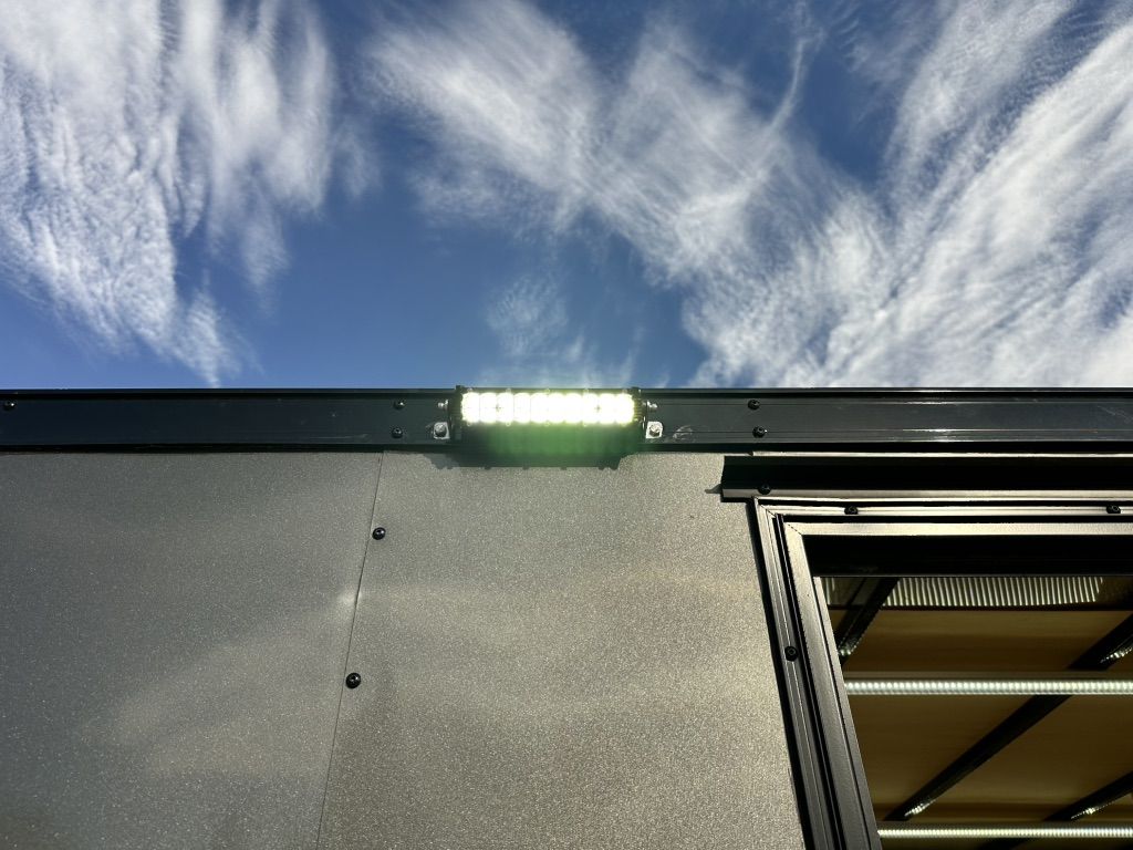 This trailer is ready to be used as a mobile workshop, office, camper or toy hauler, with internal and external lighting, 9 (20A) sockets throughout, and a powered maxxair vent fan on the ceiling.