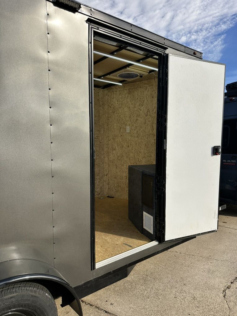 VenmoThis is a brand new, unused, 8 x 14 enclosed trailer, by Power Horse Trailers. The trailer is modified with a robust AC/DC power system, boasting 5000 watts of AC power, a 9.6 kilowatt hour, 51V, battery bank, sustained by 1,335 Watts of solar on roof, and a 30 amp shore power hook-up.