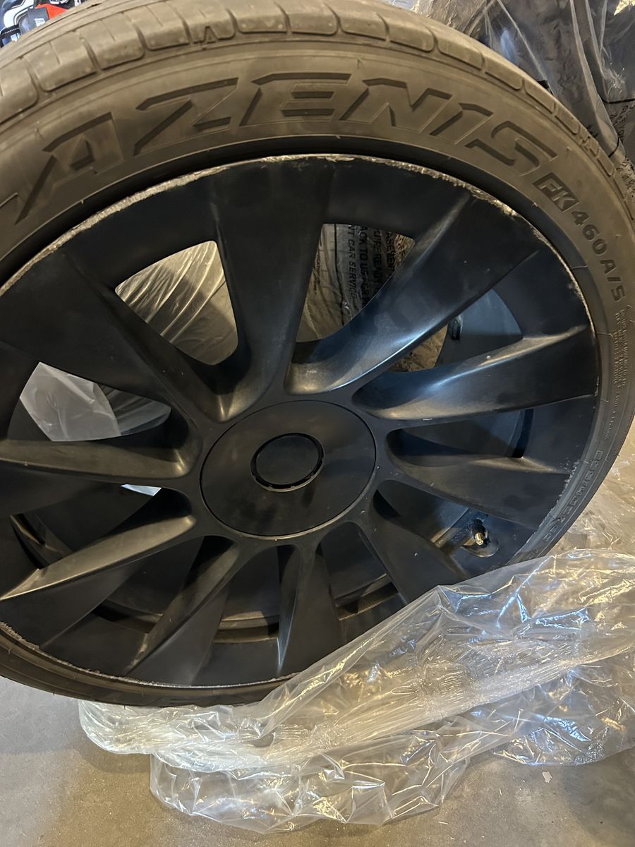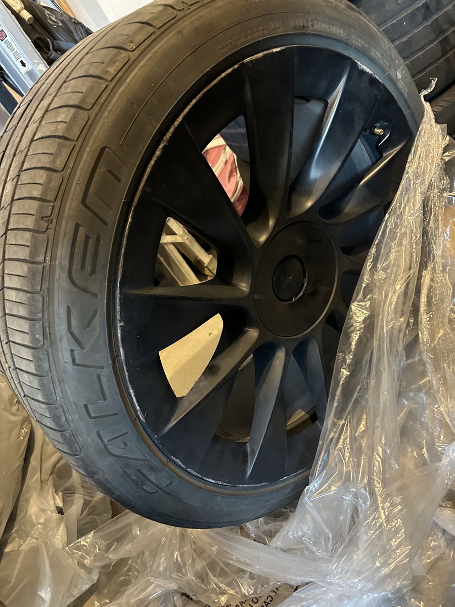 VenmoSelling 7 - 20” Induction Wheels and Tires. Came stock on my 2023 Model Y. 2 tires have about 7/32” and 2 have 4/32” tread left. Falken Azenis FK 460 A/S 255/40 R20 All Weathers. The remaining three tires don’t have much tread. All wheels have some curb rash. A good set of wheel covers would make them look brand new. They all worked great, I just switched to an 18” setup. $575 for all 7. Can meet up in Salt Lake or Centerville area.