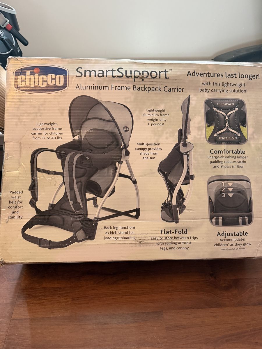 VenmoNew in box- Chicco SmartSupport Aluminum Frame Backpack Carrier Box is beat up, but still has all original packaging inside.