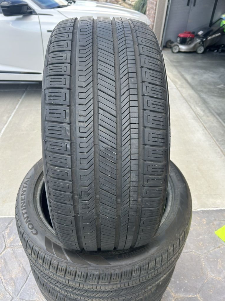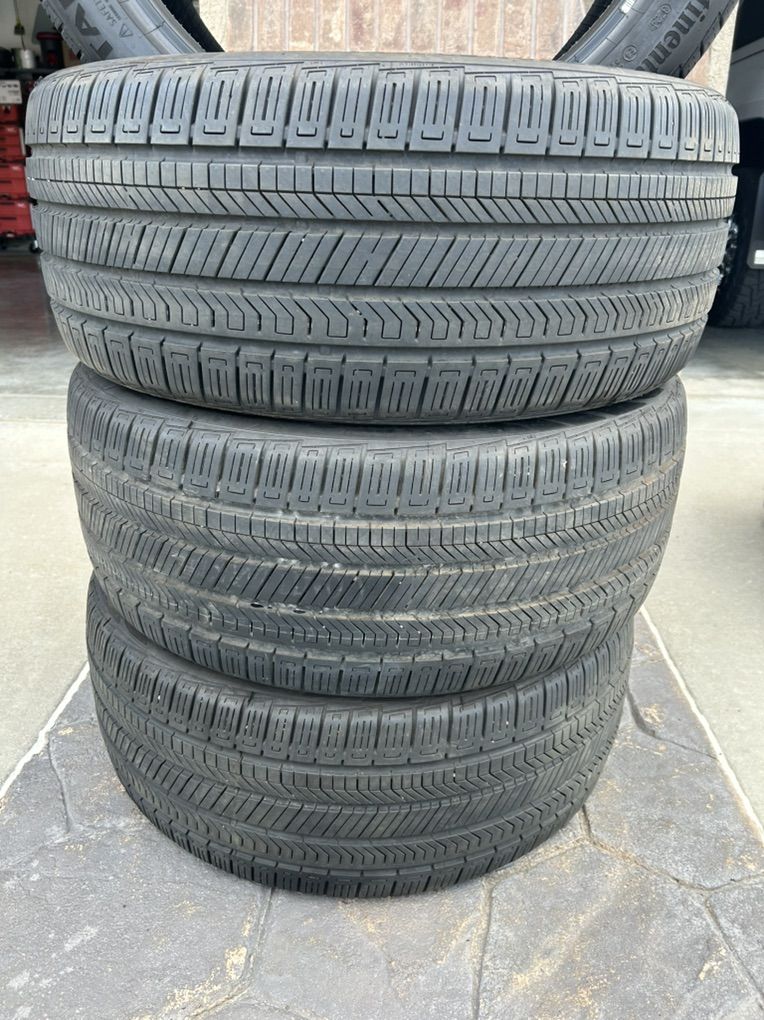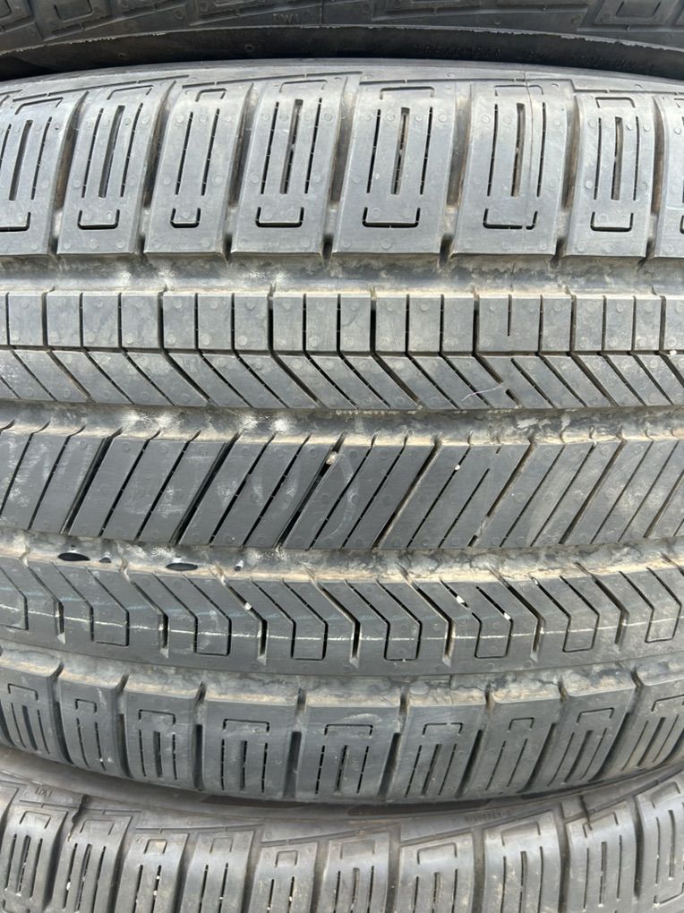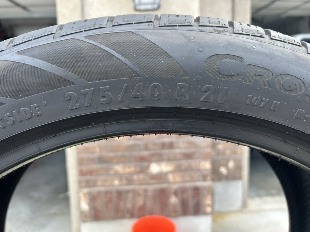 275/40R21 Continental CrossContact RX tires with Conti-Seal. Conti-Seal on inside of tire for the self sealing if it gets a puncture in tread. These tires brand new measure 10/32nds. All these tires are measuring 9/32nds. Around 85-90% tread left. Came off a Acura MDX Type S. Asking $650 obo for the set. These tires are around $400/ea new. One tire got a nail and had a slow leak through the conti-seal so has a small plug in one. Not interested in trades cash is king.