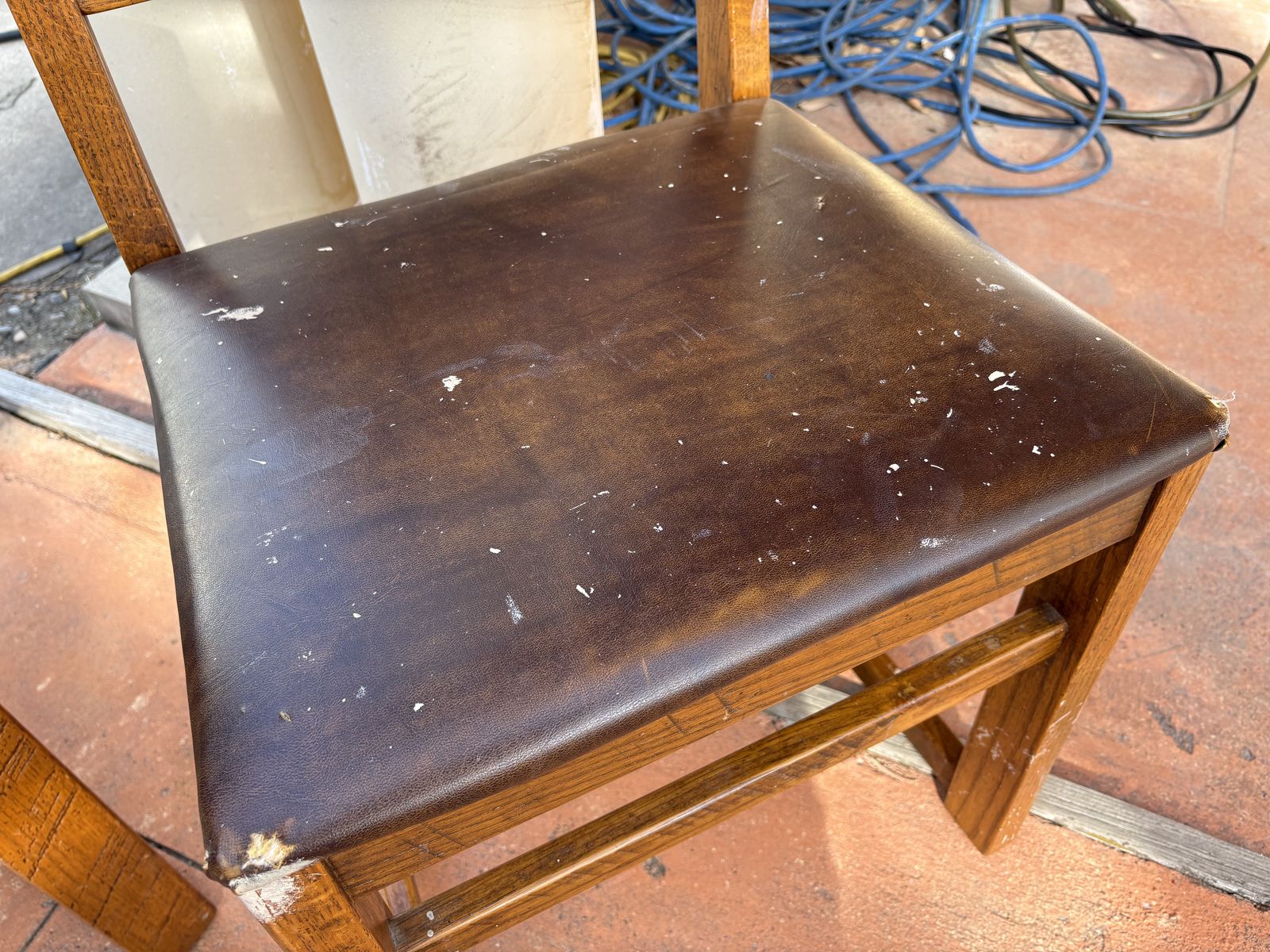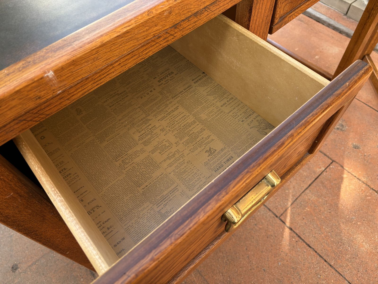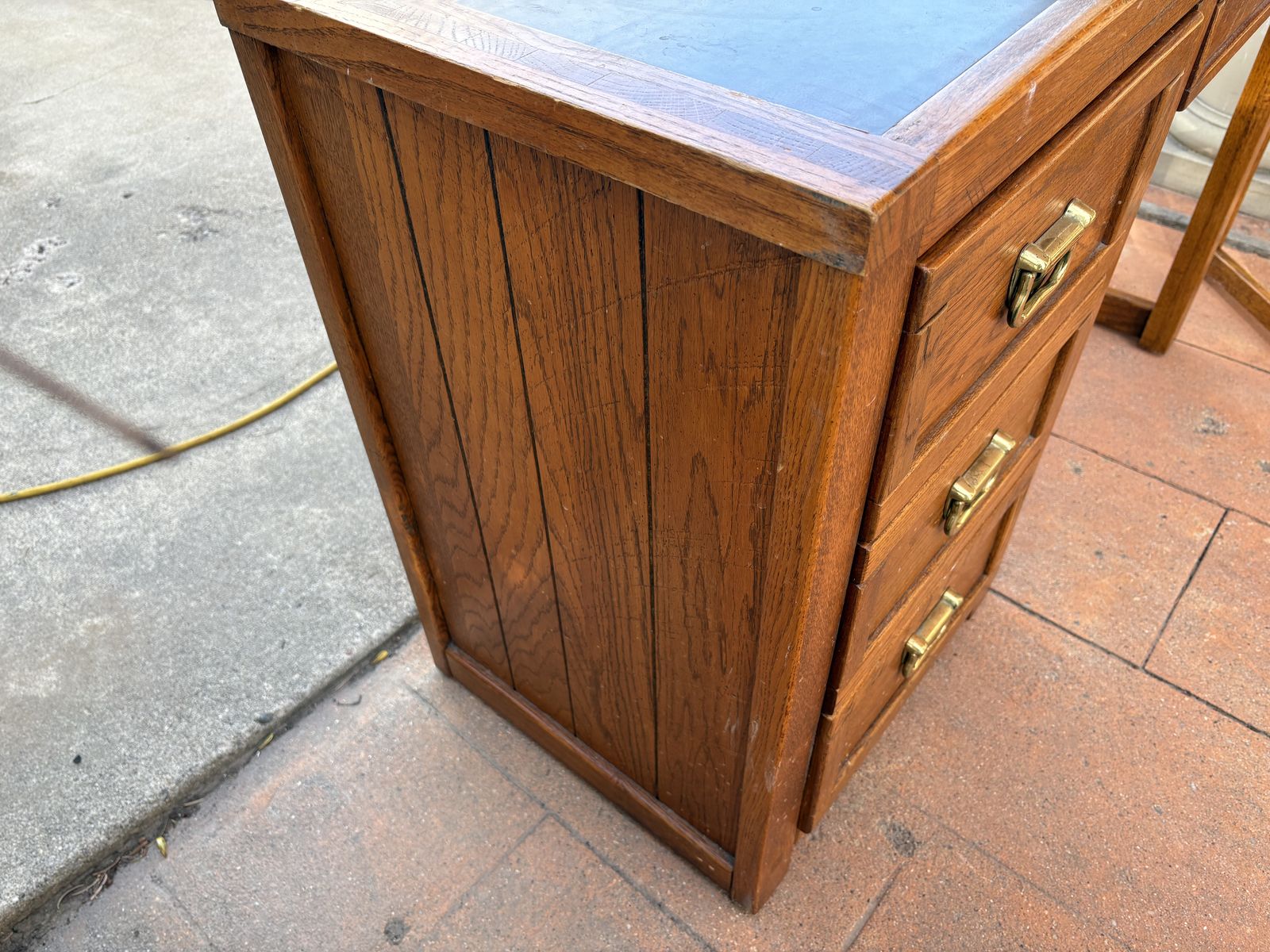 I have a vintage oak mission style desk and chair. I believe they were made by Young Hinkle. It’s a heavy, solid desk that is 43 inches long and just over 18 inches deep. It’s about 30 inches tall. The top looks like leather. It’s in good shape for its age but has a couple of marks on top (see the close up picture). The chair is not in great shape. It has paint on it (see the last picture). See my other ads for jewelry, artwork, home decor and more.