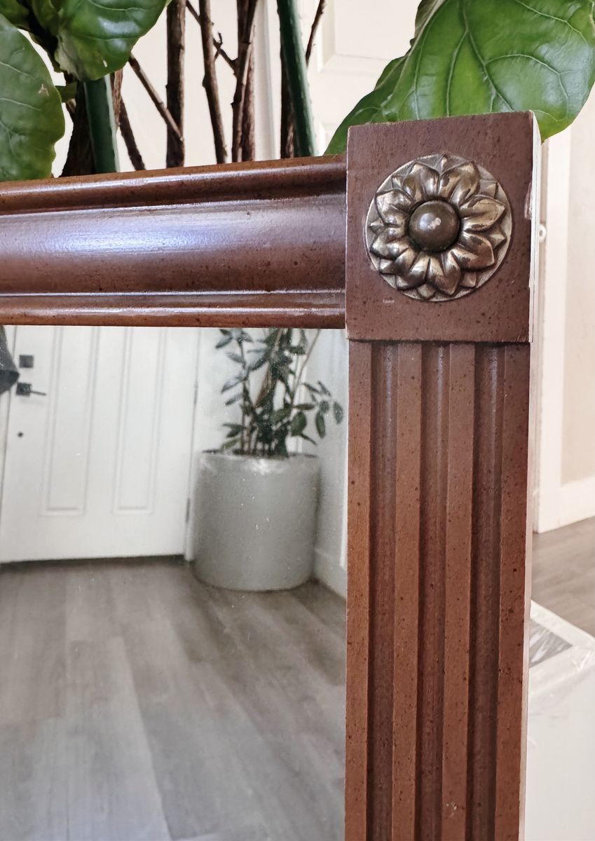 VenmoVintage Mid Century Large Scale Walnut Mirror w/Brass Detail by Bassett