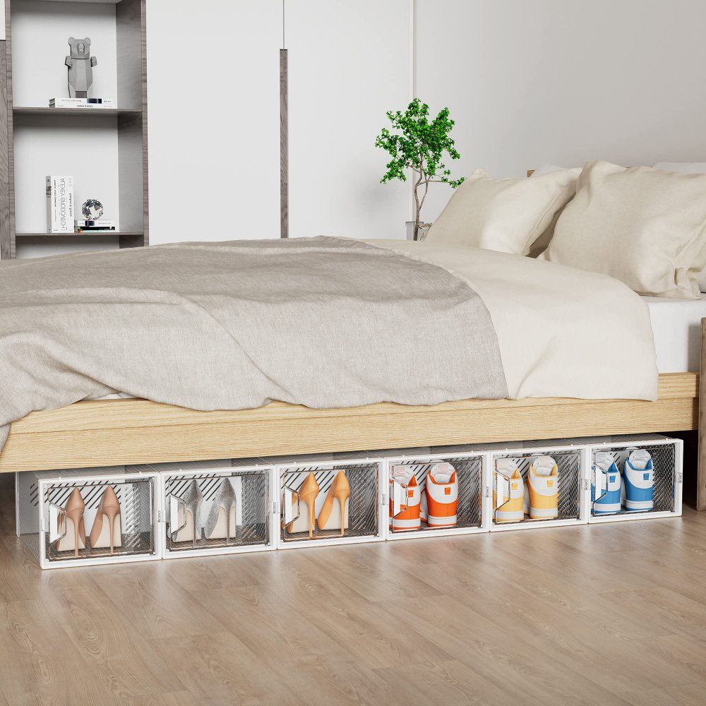 CashAppOverall Assembled Size: 13.1(L) x 9.8(W) x 7.5(H) inches/34(L) x 25(W) x 19(H)cm, suitable for men's shoes in size 12 and women's shoes in size 13. Facing the messy shoe storage space, this stackable plastic shoe box can be the best choice